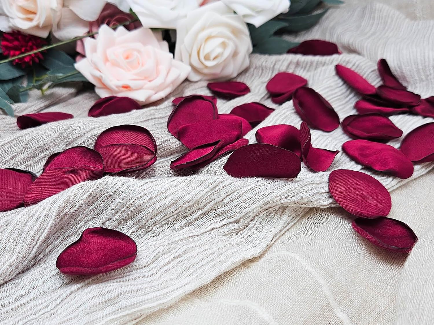 ZOOYOO 200Pcs Burgundy Silk Rose Flower Petals for Valentaine's Day,Wedding Flower Gril Basket,Aisle Scatter,Table Centerpieces,Romantic Night Decoration,3.5cm Each