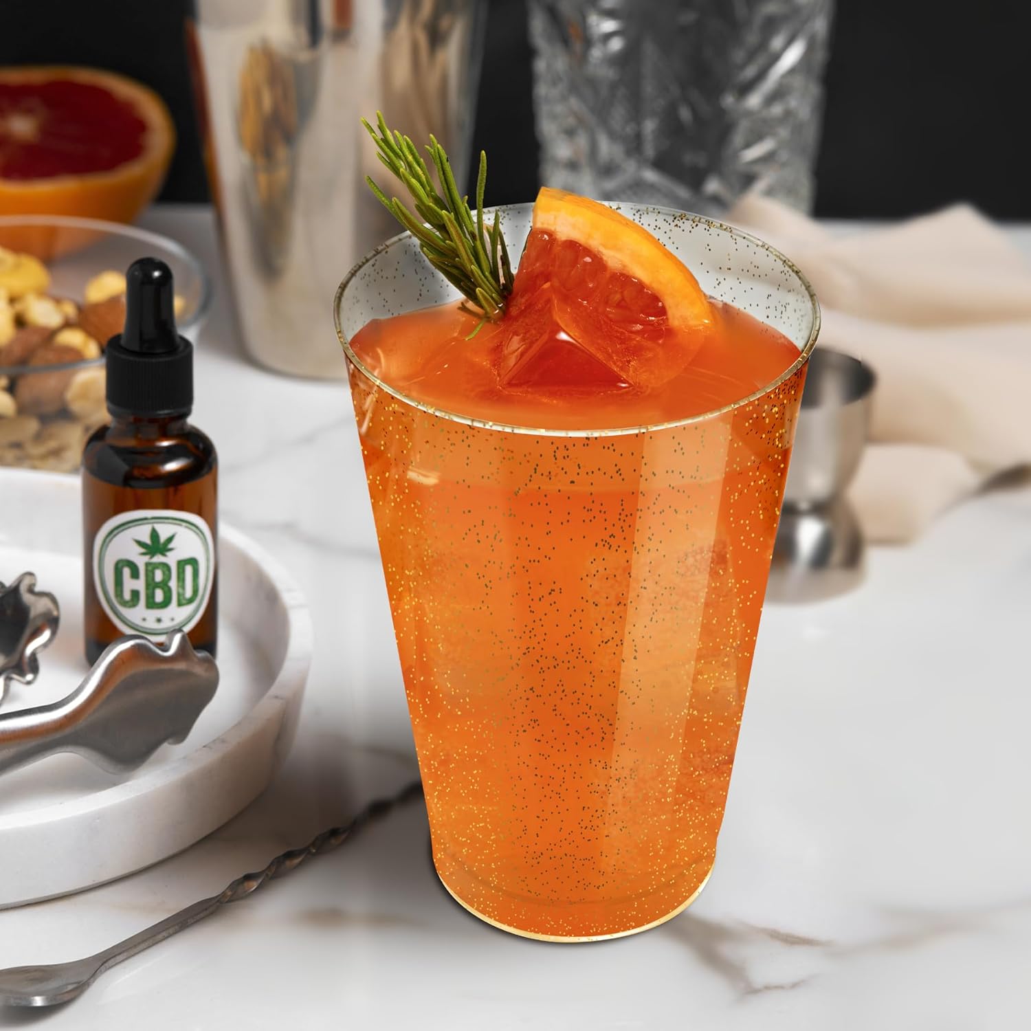 [100 Pack] 12oz Plastic Cups with Gold Glitter Sturdy & Food Safe Plastic Wine Glasses Disposable Cups Wedding Cups Party Cups Drinking Tumblers for Wine, Cocktails and Cold Beverages