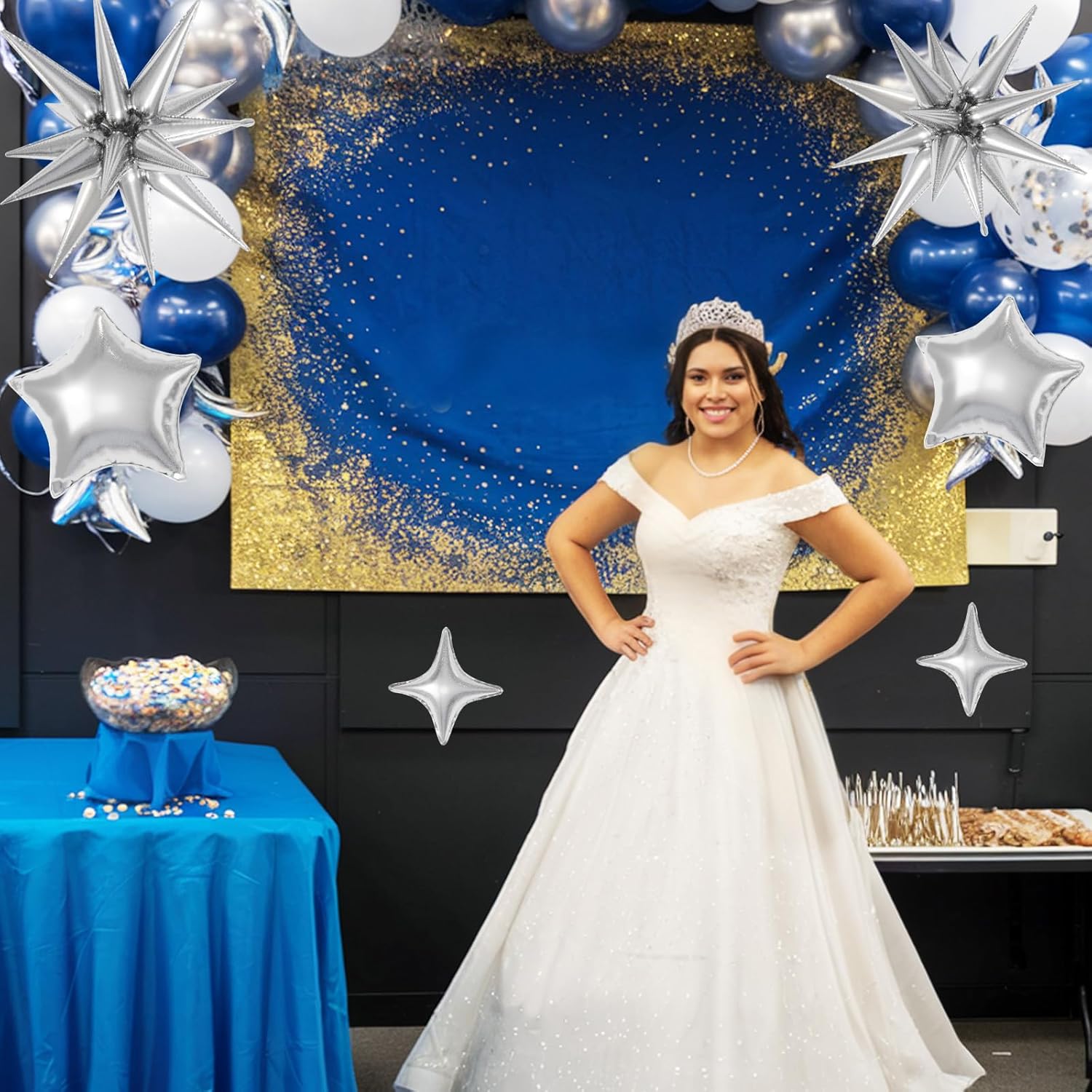 16 Pcs Silver Star Balloons, 22/18/10 Inch Foil Balloons, Four-Pointed Large Balloon for Kids Birthday Graduation Celebration Wedding Baby Shower Party Decorations