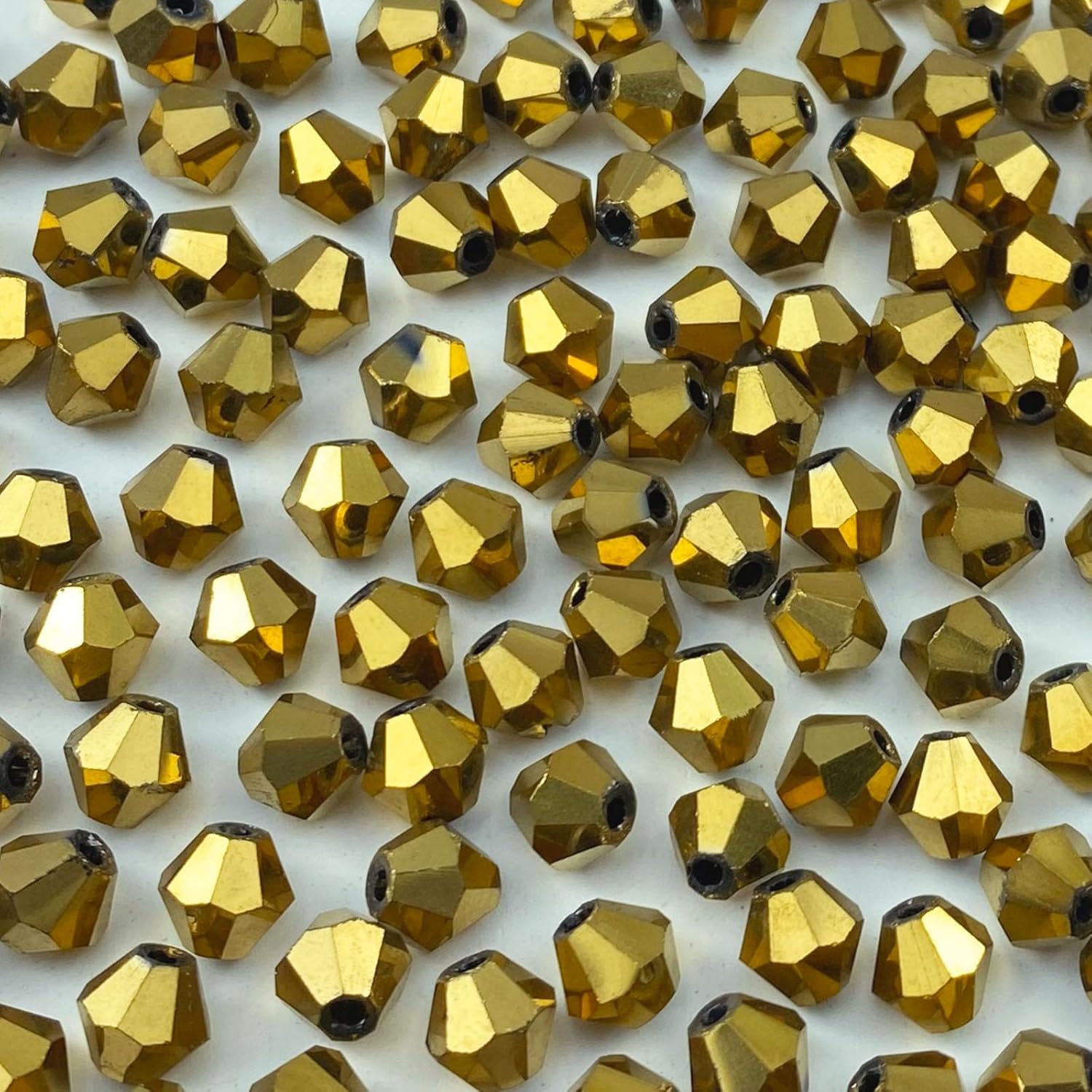 250pcs 6mm Bicone Crystal Glass Beads Loose Spacer Beads Faceted Craft Beads for Jewelry Making DIY Necklace Bracelet Earring Wind Chimes Suncatchers Ornamen(Mine Gold)