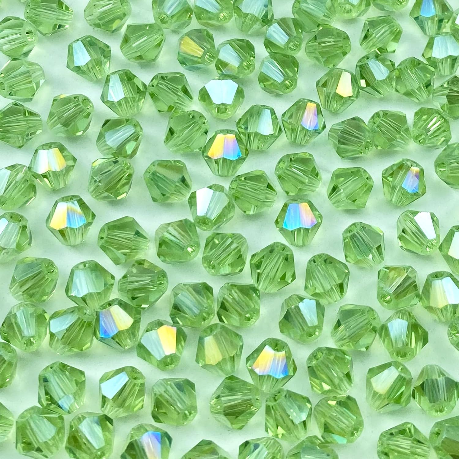 250pcs 6mm Bicone Crystal Glass Beads Loose Spacer Beads Faceted Craft Beads for Jewelry Making DIY Necklace Bracelet Earring Wind Chimes Suncatchers Ornamen(Light Green AB)