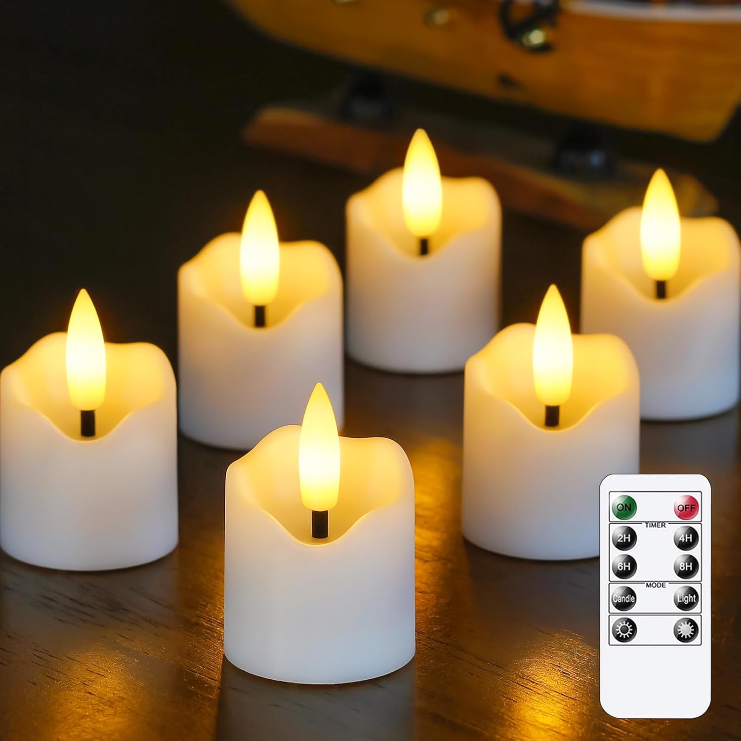 - Complete Set with Pre-Installed Batteries: The package includes 6 flameless tea light candles (each with 1 pre-installed battery for immediate use), 1 convenient remote control for easy operation, and a detailed user manual to guide you through setup and usage