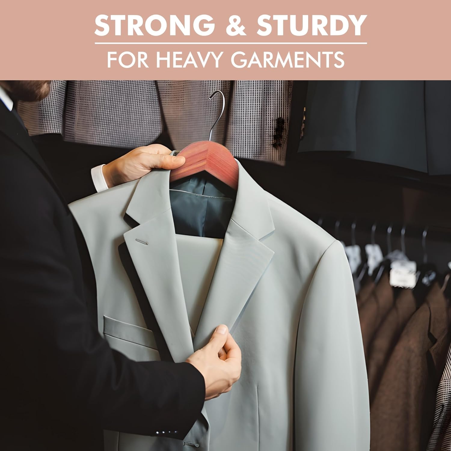 - ✅ Keep Clothes in Tip-Top Shape - Designed with wide, flared shoulders, these cedar closet hangers help maintain your clothes' shape. They're perfect for hanging expensive and tailor-made for suits and dresses Hangers.