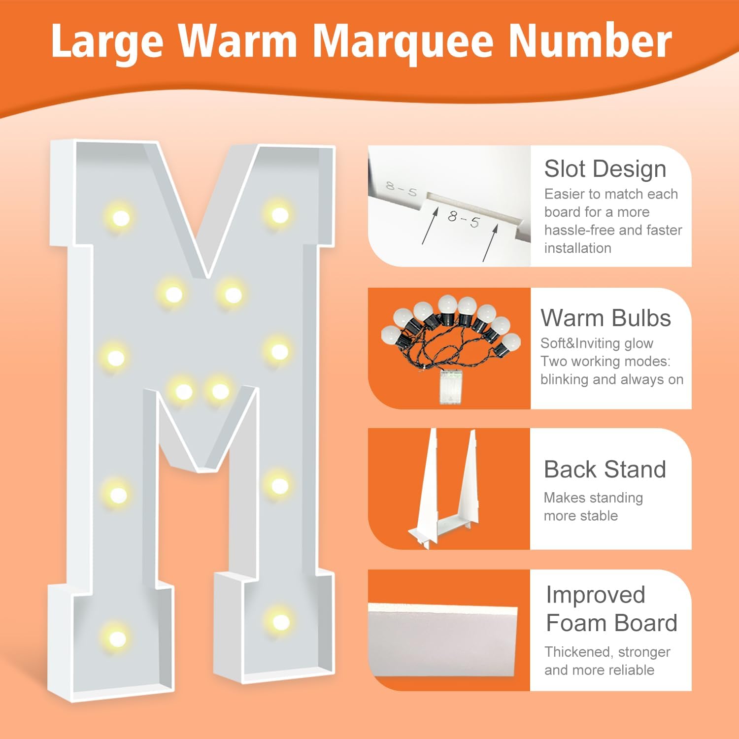 4FT Marquee Light Up Letters, Warm White Light Up Letter M, Large Marquee Letter Marry Me Sign for Birthday Party Decorations Wedding Proposal Decor