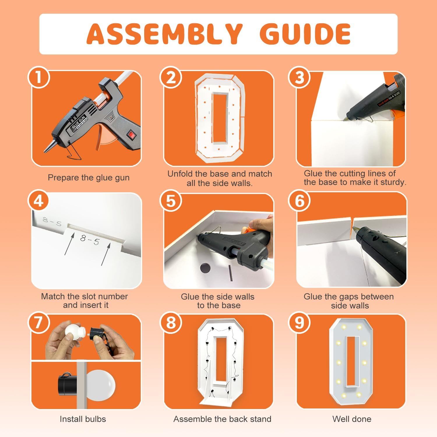 - EASY TO ASSEMBLE: The package includes pre-cut foam boards, light strings and instructions. Each foam board has slots and is numbered, so you can match them according to the 2 same numbers. All you need to do is to prepare a hot glue gun and 3 AA batteries, follow the step-by-step instructions or online video for a hassle-free assembly. Decorate the party with your kids or friends and enjoy the DIY fun. (Note: Glue gun, glue and batteries are not included)