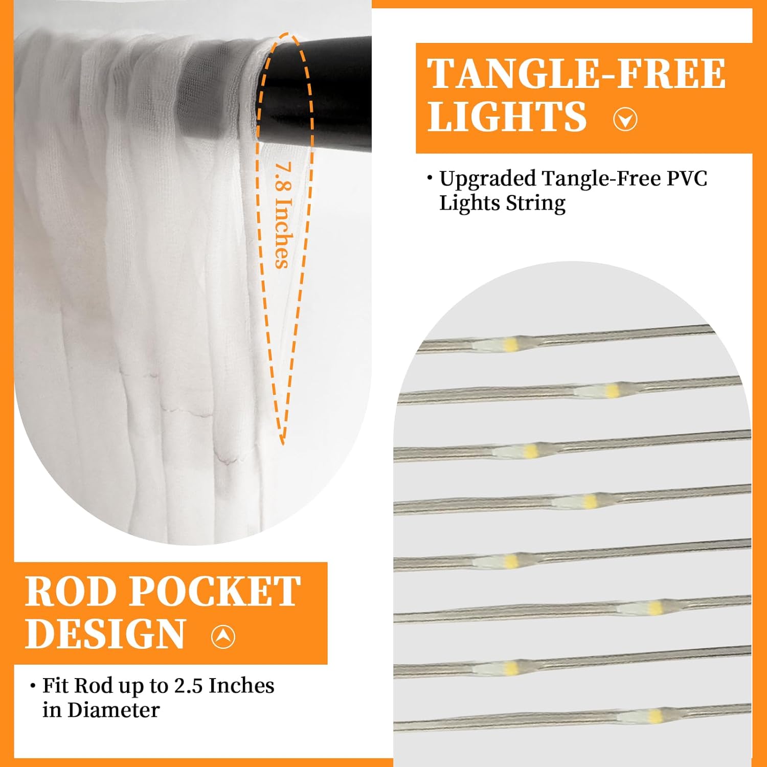 - Easy Setup & Reusable Decor: Designed for convenience, the tulle curtain features a 2.5-inch rod pocket for easy hanging on pipes or stands. Includes 12 Transparent clips make the lights simple to hang and secure to the backdrop, adding a warm, inviting glow. Reusable and easy to store, this set is perfect for multiple events