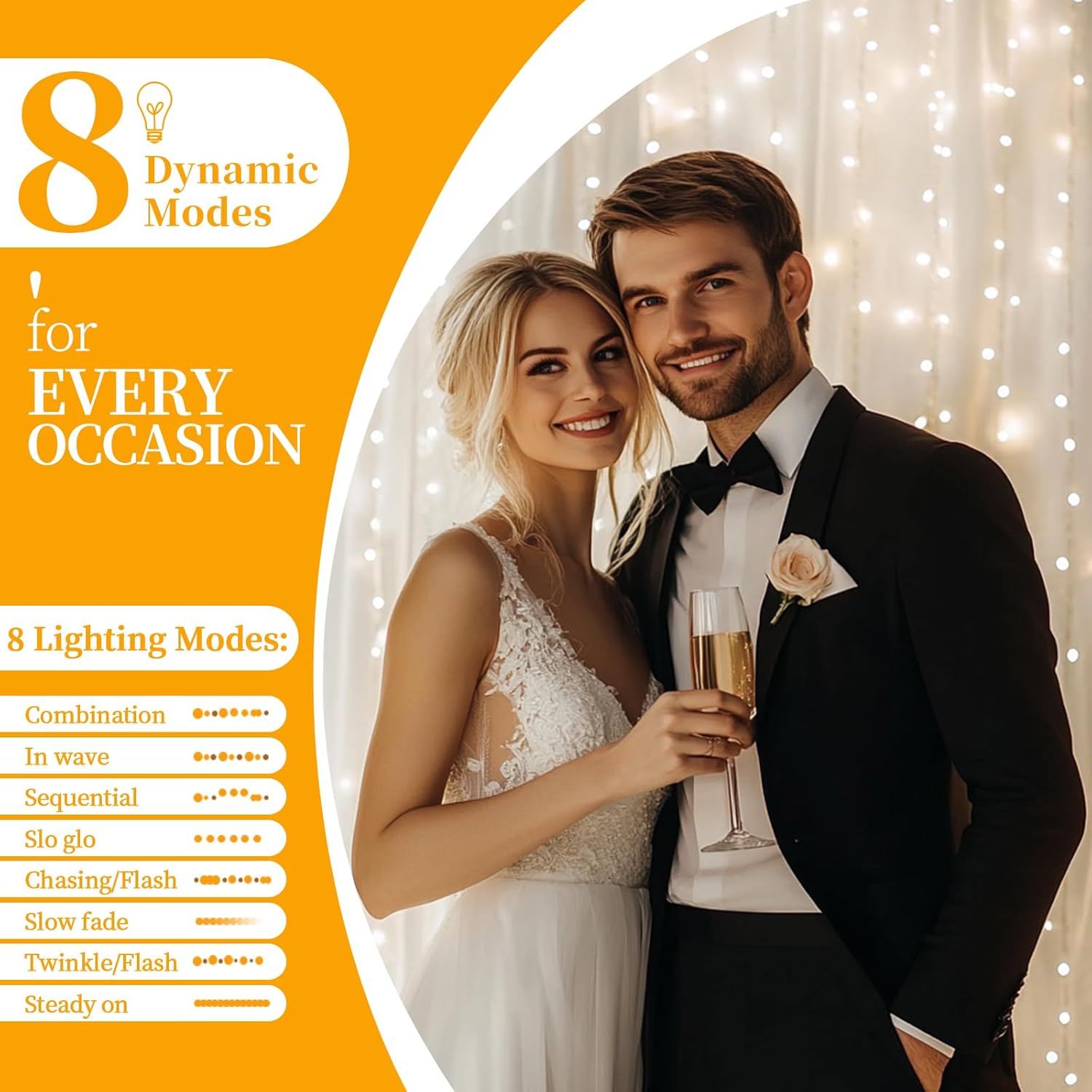- Complete Event Decor Solution: Includes a 10 x 10 feet string of 300 warm white LED string lights with upgraded tangle-free PVC wiring. USB-powered with a 10ft cord, itβs compatible with adapters, power banks, or laptops. Choose from 8 lighting modes to create a magical and romantic atmosphere for any occasion