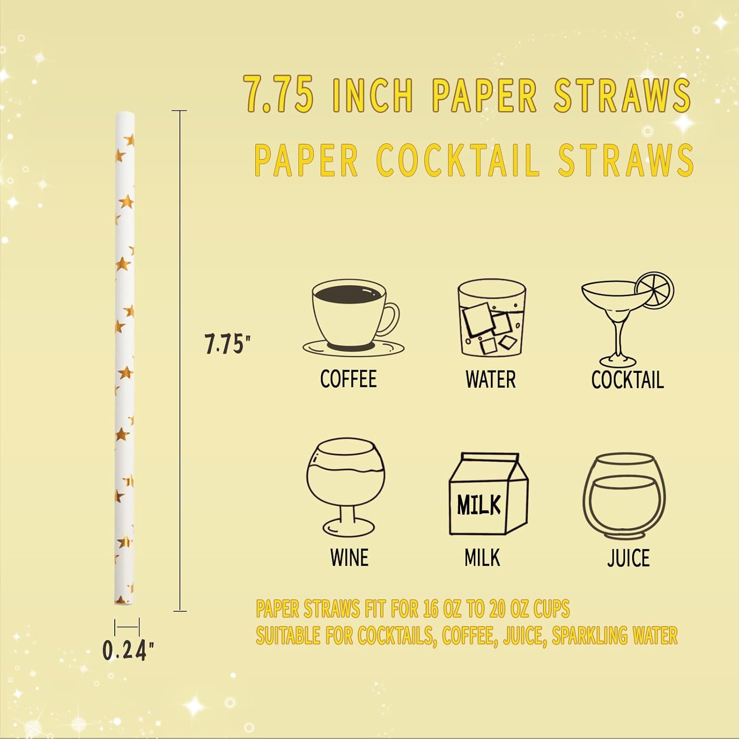 - Perfect Size: 197mm in length and 6mm in diameter (7.75" x 0.24"), these straws are ideal for most standard cups, including those holding beverages between 8 oz and 24 oz