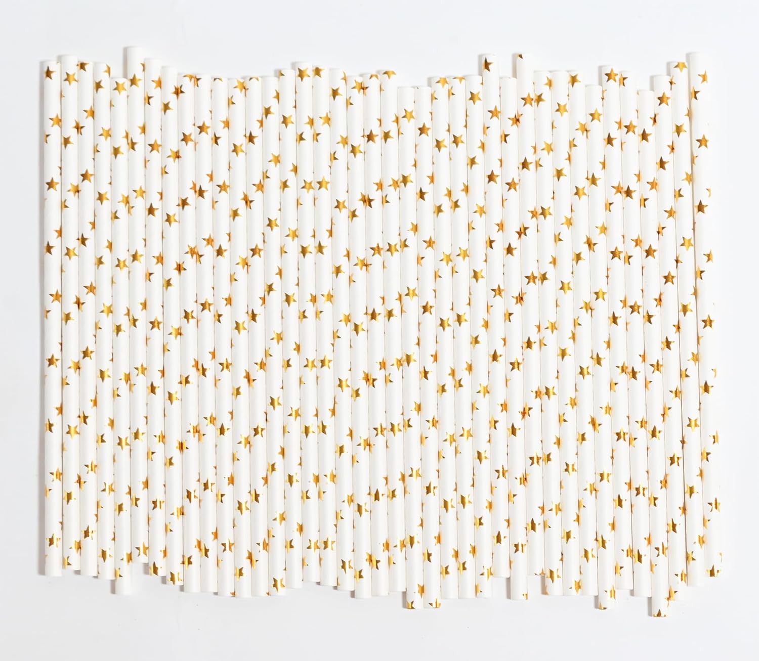 Paper Straws Disposable, Cocktail Metallic Gold Star Straws Drinking Biodegradable Straws for Holiday, Party, Wedding - 100 Count,7.75 Inch