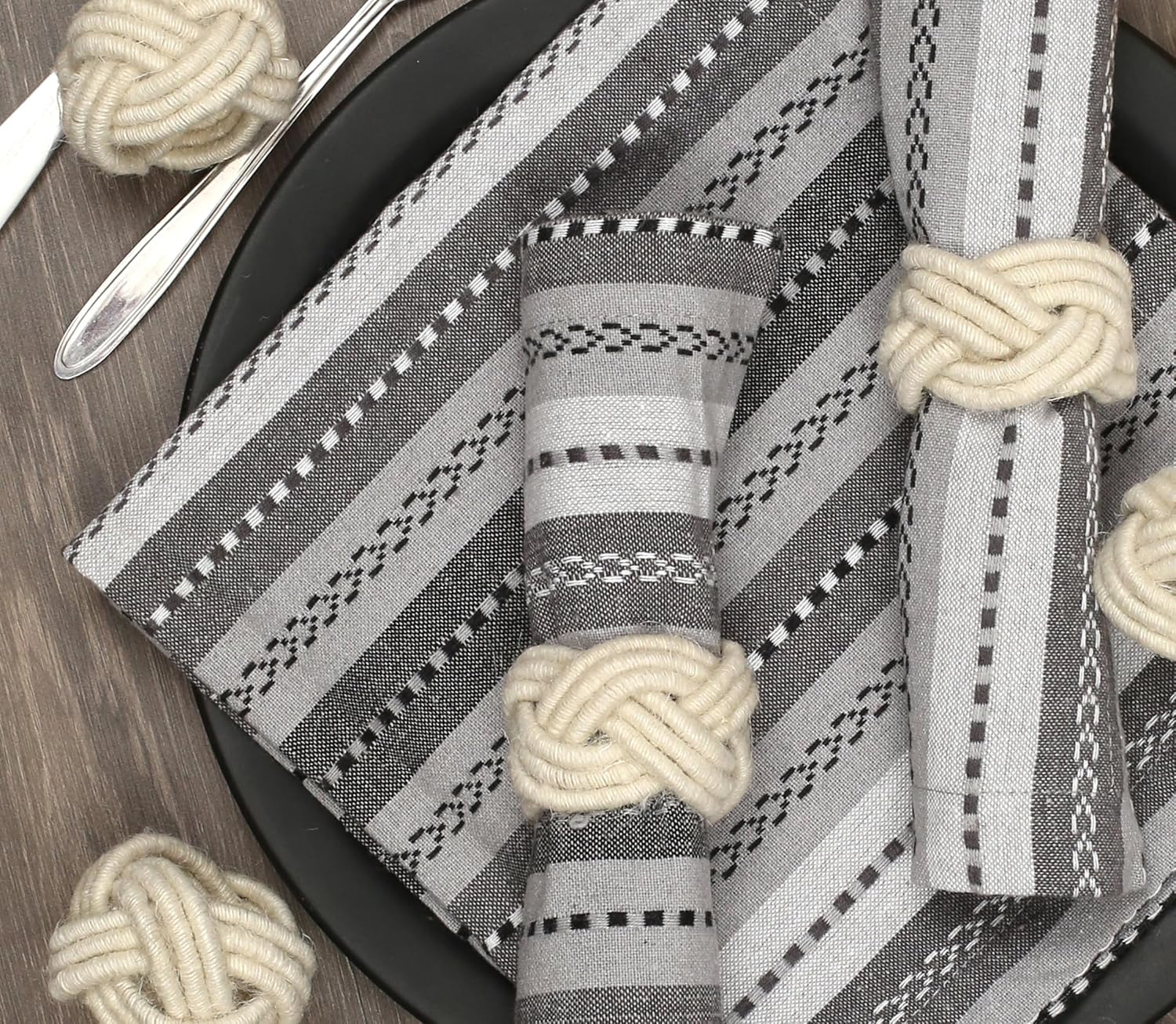 Farmhouse Napkin Ring Set of 12 - Handwoven Cotton & Jute Knot Design for Table Decor, Weddings, Dinner Parties & Everyday Dining - Decorative Adornment for Table Setting (Off White) - CLEENTABLE