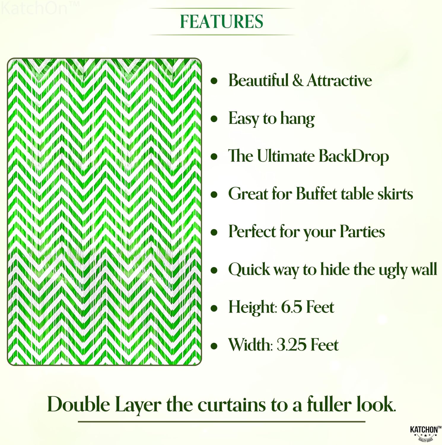 - CREATE A PERFECT PHOTO BACKDROP: Capture unforgettable moments with these sparkling St Patricks Day photo backdrop curtains! The vibrant green and white curtains provide a glamorous background for selfies, group photos, videos. Whether you're celebrating with friends, hosting a themed event, or organizing a shamrock decorations party, these green white foil fringe curtains add an elegant and festive touch to your pictures, making your memories even more special. POWERED BY BRND.ME