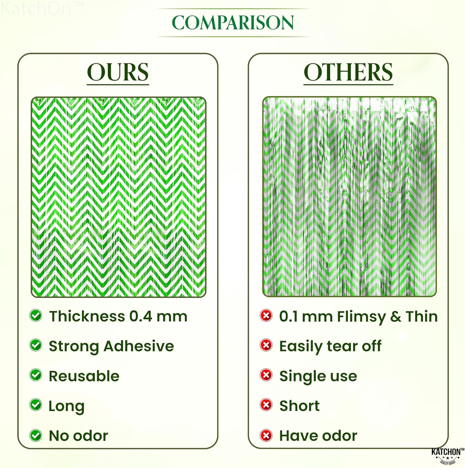 KatchOn, Green and White Foil Fringe Curtains - 6.5x6.5 Feet | Green Foil Fringe Curtain for Green and White Party Decorations, Graduation Decorations 2025 | Forest Green Birthday Decoration