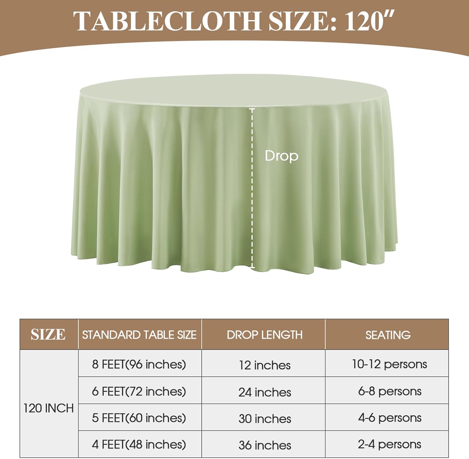 - Suitable Size: This polyester round tablecloth has multiple sizes to choose from, 90, 108, 120, 132 inches, which can meet the needs of tables of different sizes. In order to buy a tablecloth that is more suitable for your table, please measure the actual size of your table before purchasing and refer to our size chart