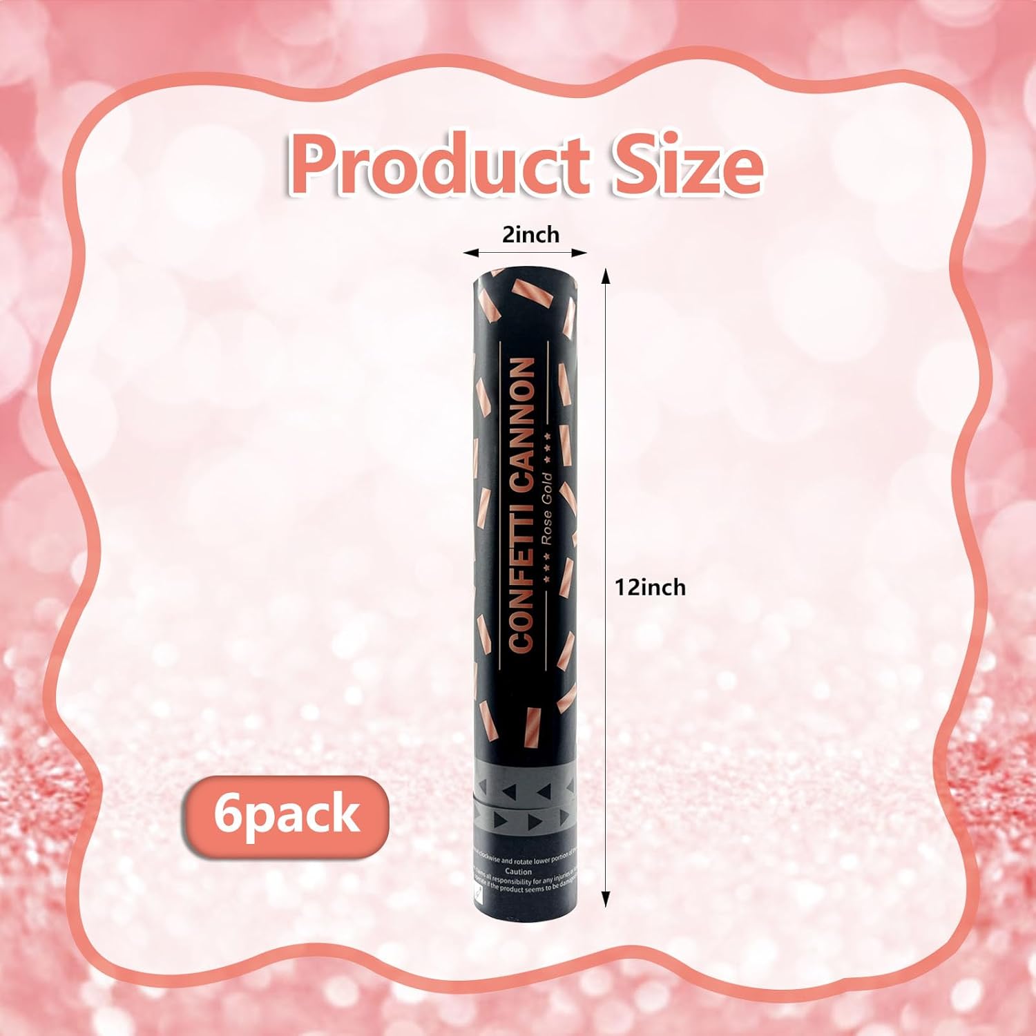 6 Pack Rose Gold Confetti Poppers, 12 Inch Confetti Cannon Party Poppers Shooters for Gender Reveal, Birthday, Wedding, Graduation, Anniversary, Parties, Christmas, New Year's Eve