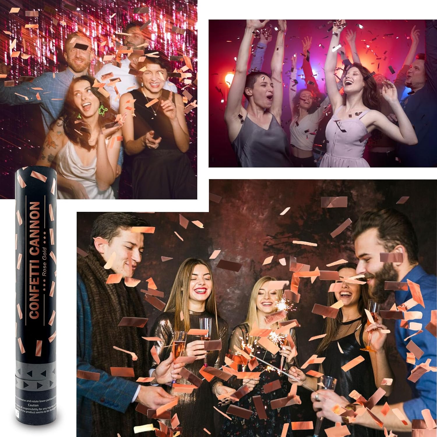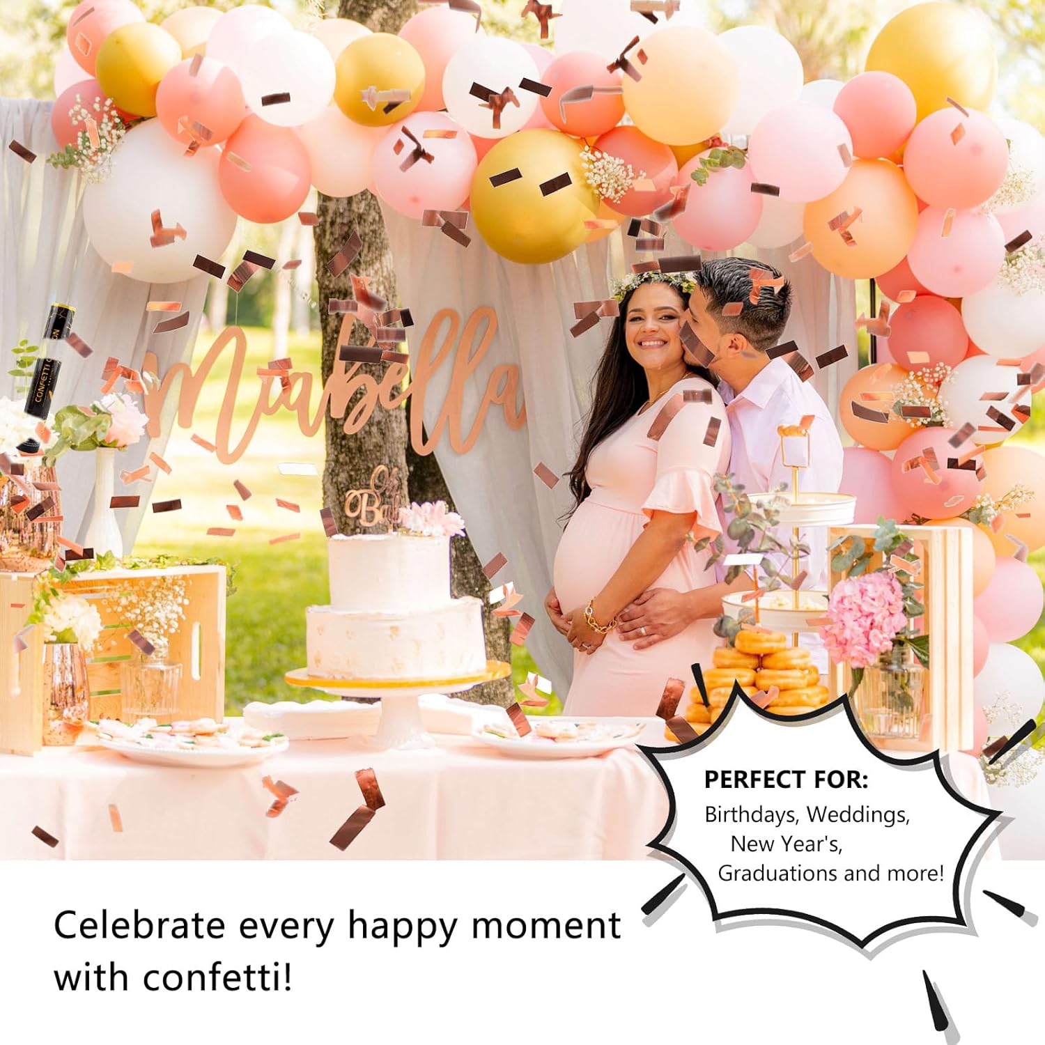 - 【Rose Gold Confetti Poppers】The use of confetti cannons is a vibrant and festive addition to various occasions. From gender reveal, baby shower, weddings, birthdays, and Christams to corporate events and celebrations, they add a touch of color and excitement. The sudden burst of colorful paper shards creates a joyful atmosphere, surprising and delighting guests. Whether indoors or outdoors, confetti cannons are a safe and effective way to make any special day even more memorable.
