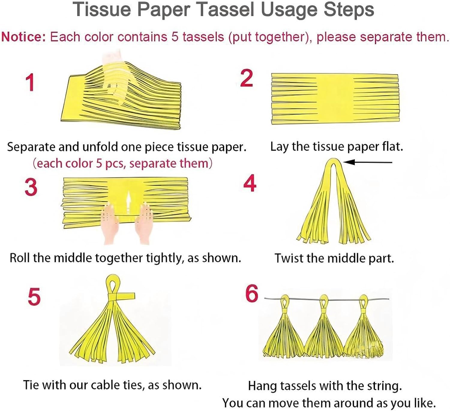 - Tassel Banner:All tassels haven't assembled to ensure the tassels is new when you get it and you can DIY personally.just follow our instruction manual on how to assemble tassels. Once you have mastered the process of assembling them, they will be assembled quickly! (This may take a while to complete, but if you have a clever hand, it will be a few minutes.)