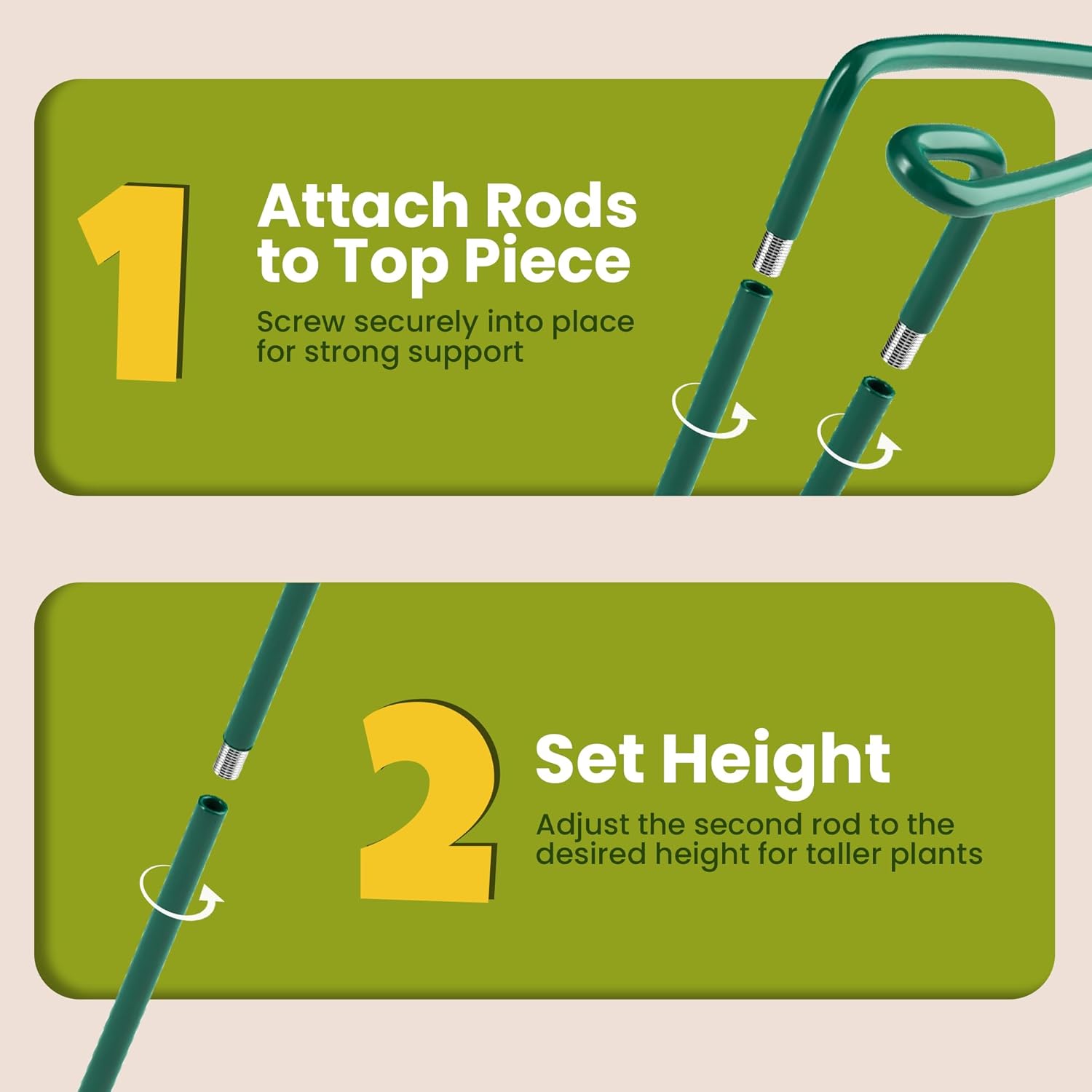 - Sturdy and Easy to Use: These plant supports are guaranteed to hold your plants straight, made with premium-grade, rustproof steel core and plastic powder coating for enhanced sturdiness. Each stake can be adjusted to 16" or 24", allowing for customized plant support.