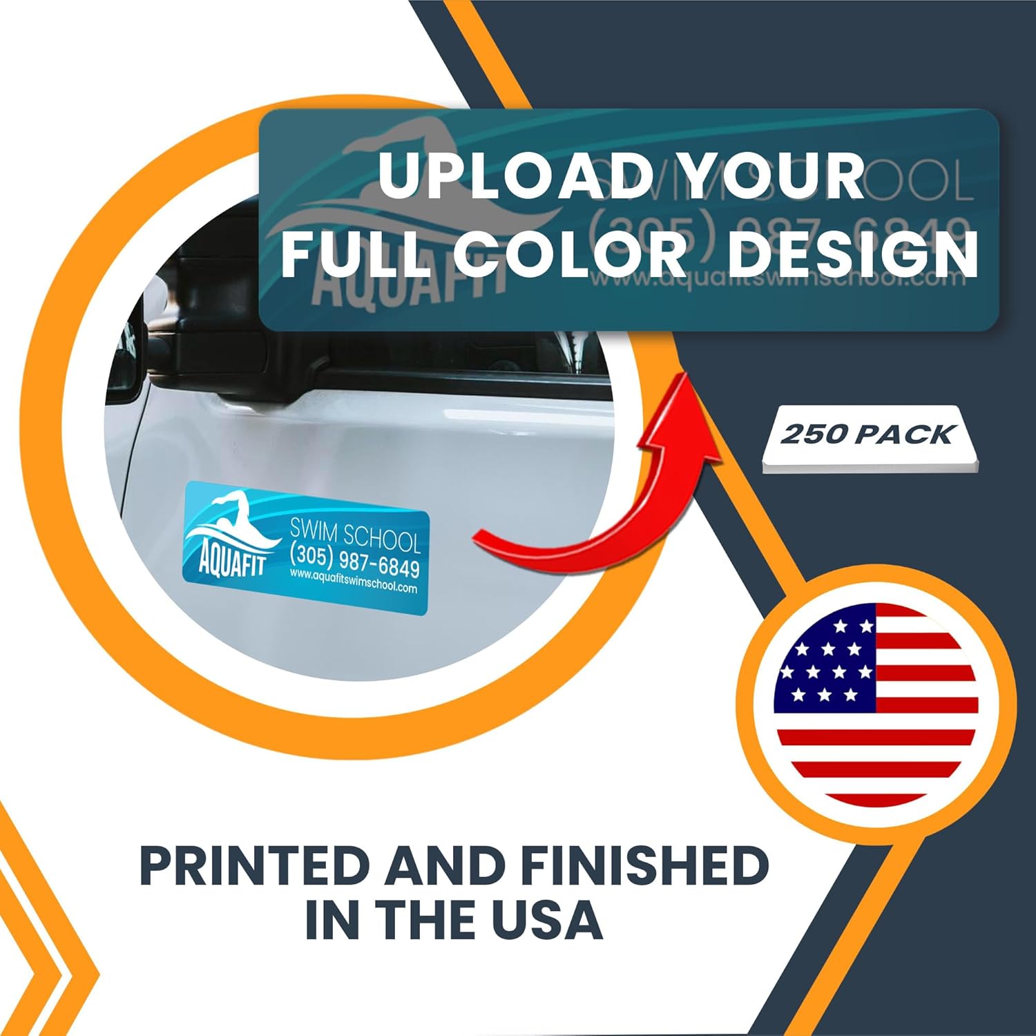 Magnet Me Up Custom 10x3 Inch Rectangle Magnet, 250 Pack, Customizable for Businesses, Personal Use, Choose Your Text, Upload Image, Magnetic Vinyl for Car and Any Magnetic Surface, Crafted in USA