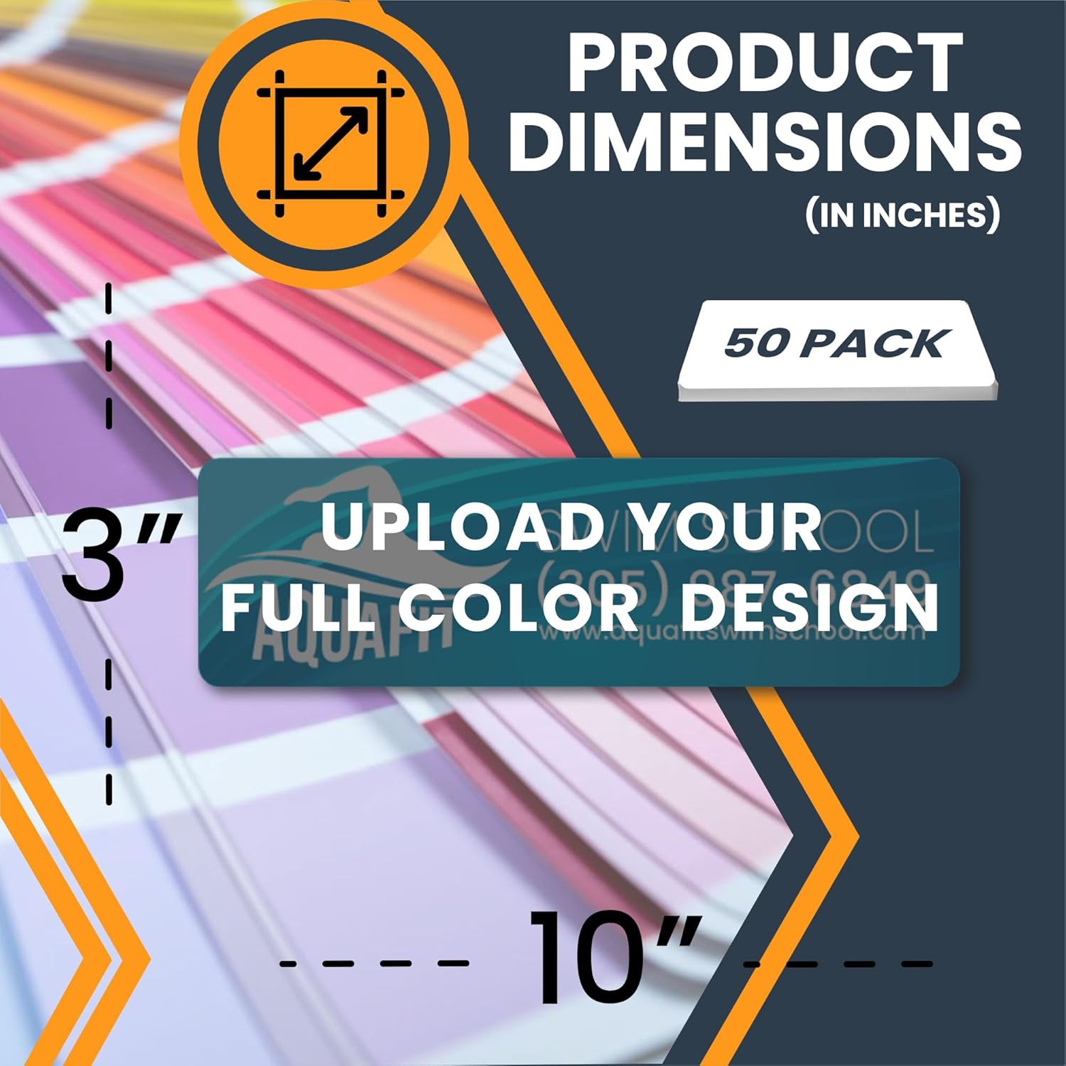 Magnet Me Up Custom 10x3 Inch Rectangle Magnet, 50 Pack, Customizable for Businesses, Personal Use, Choose Your Text, Upload Image, Magnetic Vinyl for Car and Any Magnetic Surface, Crafted in USA