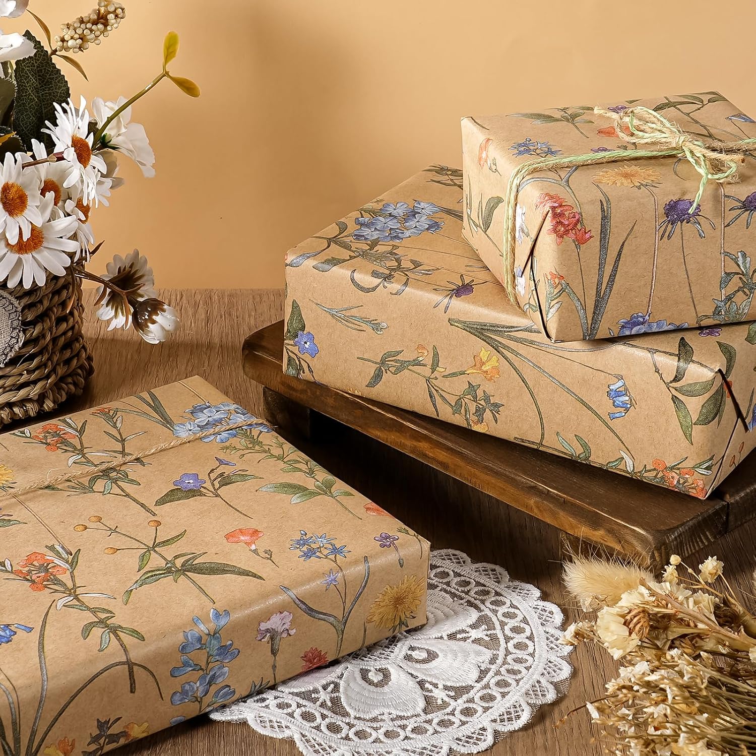 - Kraft Floral Design: Kraft wildflower floral garden design, vivid colors and interesting pattern will make your gift special and shining.