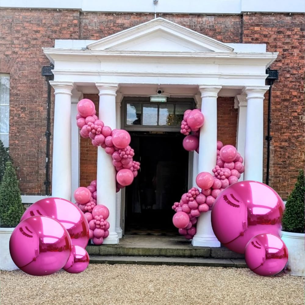 Inflatable Mirror Ball Set - Airtight PVC Spheres for Parties, Weddings, and Events. Perfect for Decoration, Hanging, and Displays. Includes Electric Pump (Rose red, 24in-2pk_32in_39in_47in_71in)