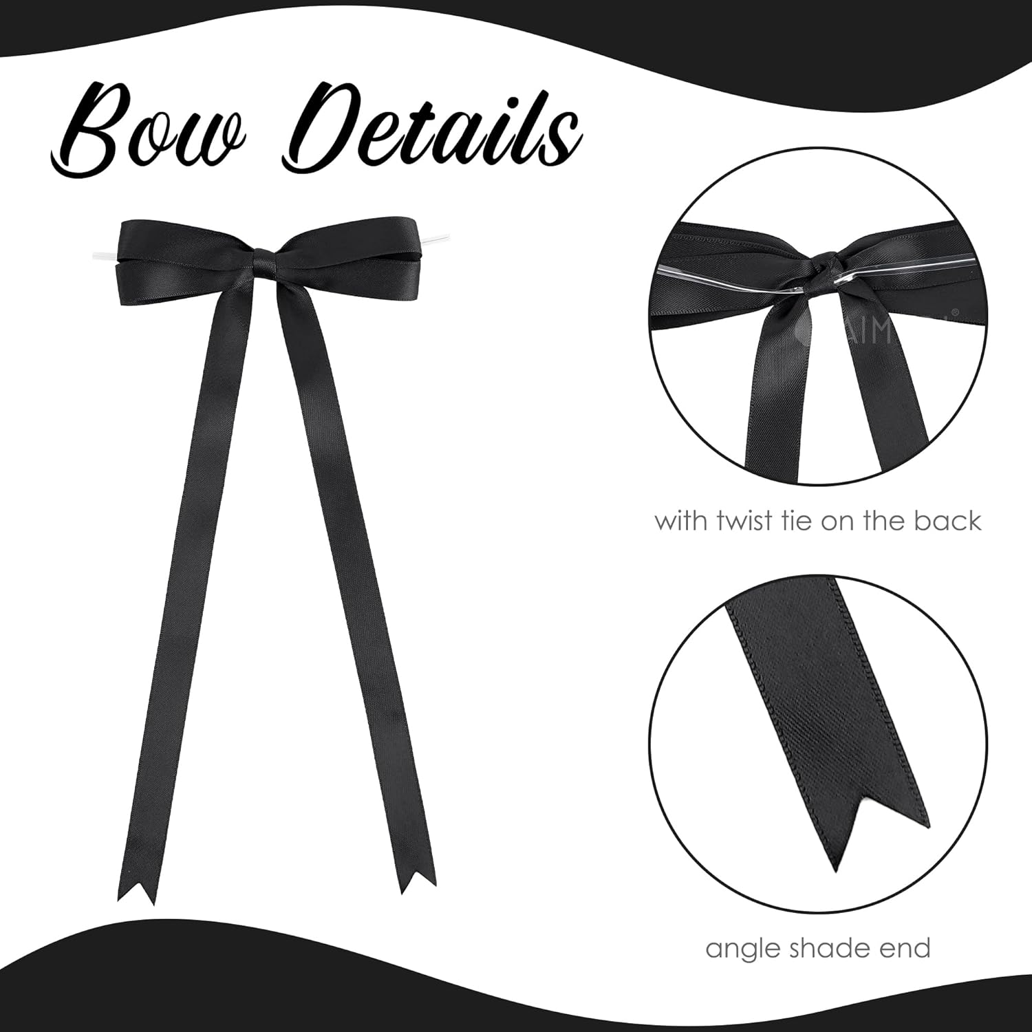 - [Size]: You will receive 36 pieces black twist tie bows, each bow is 10 inches long and 5 inches wide, the end of the bow adopts a fishtail design, which is delicate and cute. Sufficient quantity allows you to have unlimited possibilities for your handicrafts.