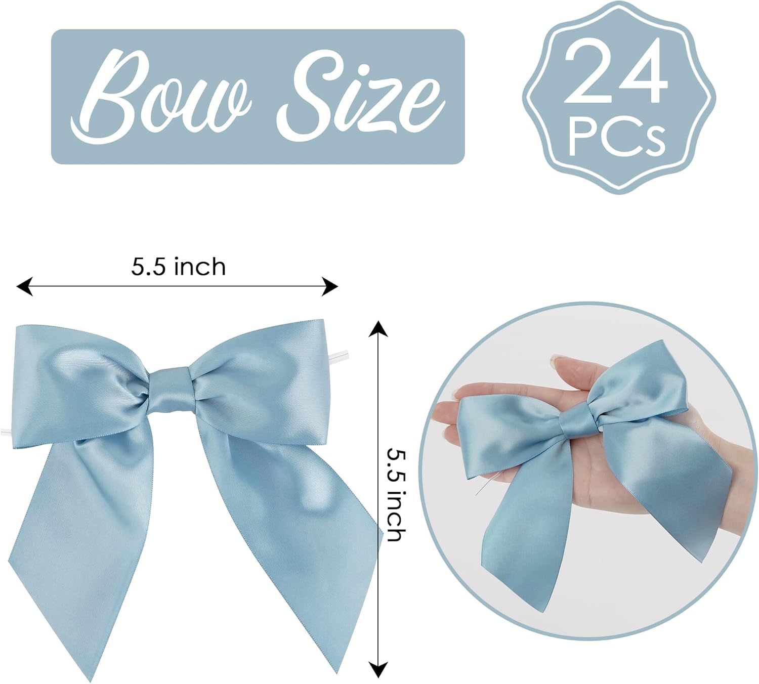 AIMUDI Dusty Blue Satin Bows 5.5" Bows for Gift Wrapping Satin Twist Tie Bows Premade Ribbon Bows for Treat Bags Invitations Baskets Wreaths Crafts Wedding Birthday Baby Shower Decorations, 24 PCs