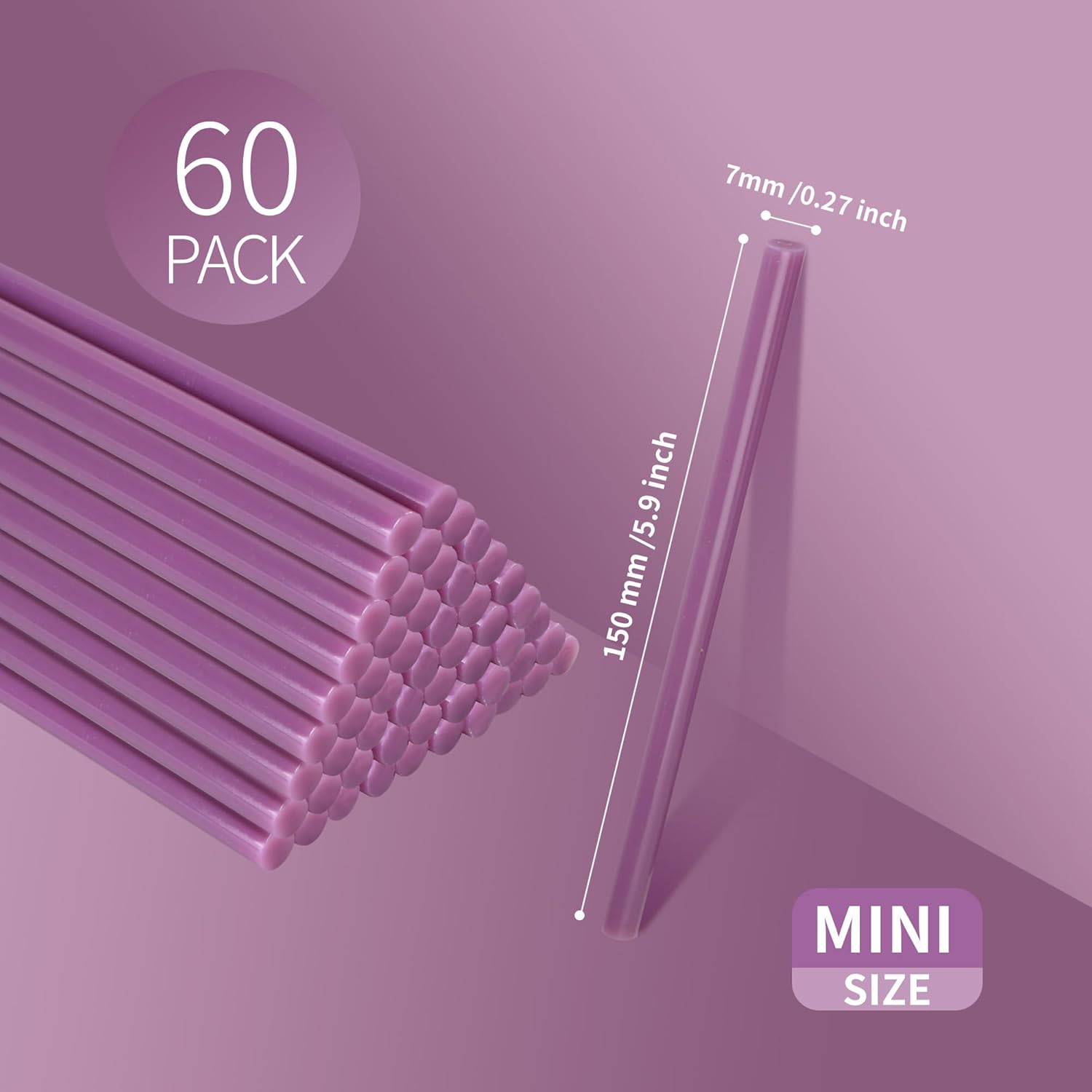 MATUFF light purple Hot Glue Sticks Mini 0.27" x 5.9 inches, Hot Melt Mini Glue Sticks Colored for All Temperature Mini Glue Guns, for Craft Arts and Wedding Cards Stamp Sealing, Bulk hot Glue 60 Pack
