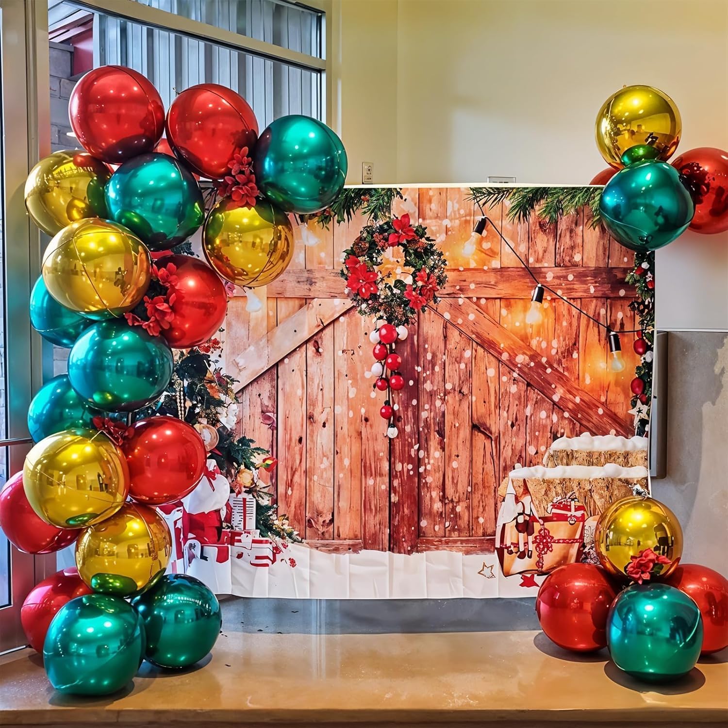 12Pcs Red Round Foil Balloons, 22" 15" 10" 4D Ball Balloons, Metallic Red Foil Balloon for Wedding Birthday Graduation Christmas New Year Party Decoration Supplies Backdrops