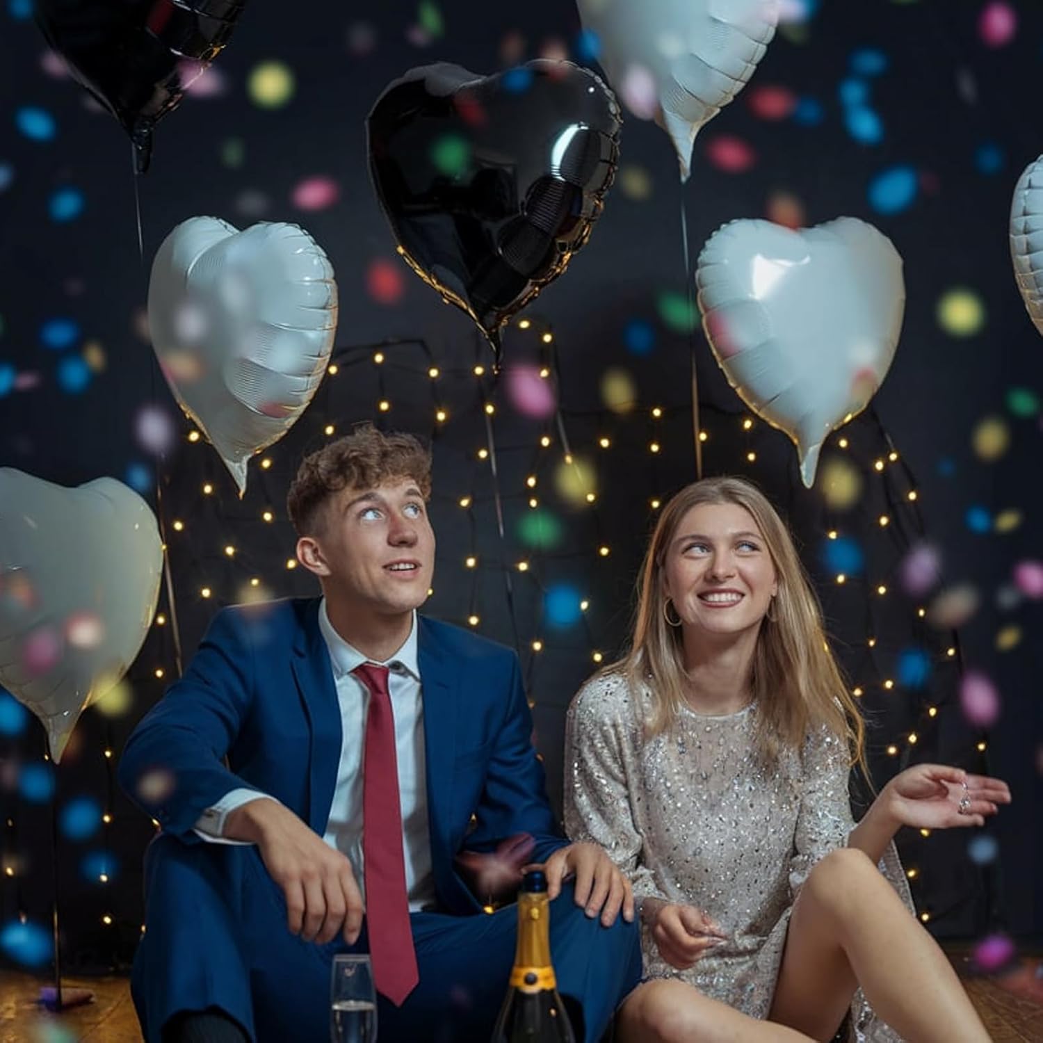 • Versatile Decorative Accent: Perfect for a variety of occasions, including birthdays, baby showers, Valentine's Day, weddings, and anniversaries. These black and white heart balloons are suitable for creating stunning balloon bouquets, enhancing party venues, or serving as vibrant photo backdrops.