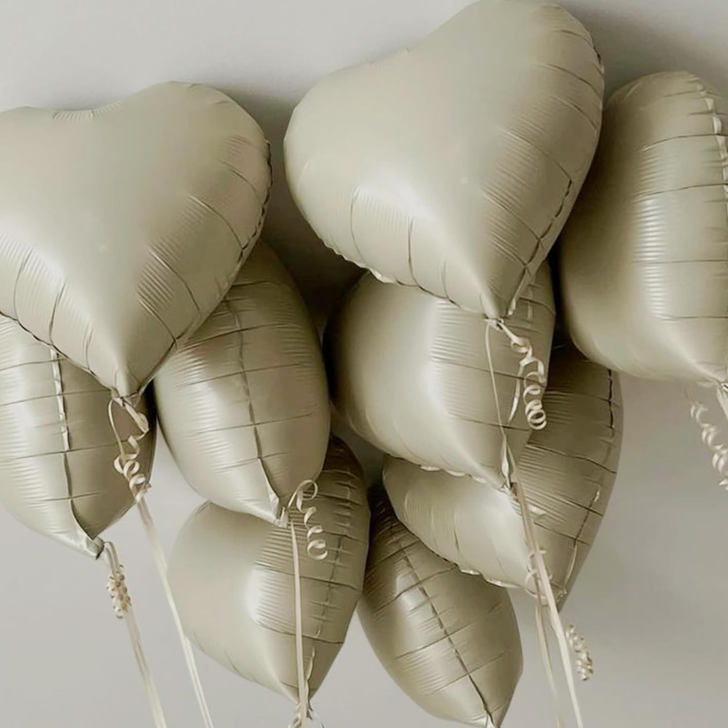• Charming Cream Heart Balloons: Elevate your celebration with our set of 12 heart-shaped sand white balloons, each measuring 18 inches. Accompanied by a ribbon, these balloons are ideal for creating a festive and loving atmosphere at any special event.