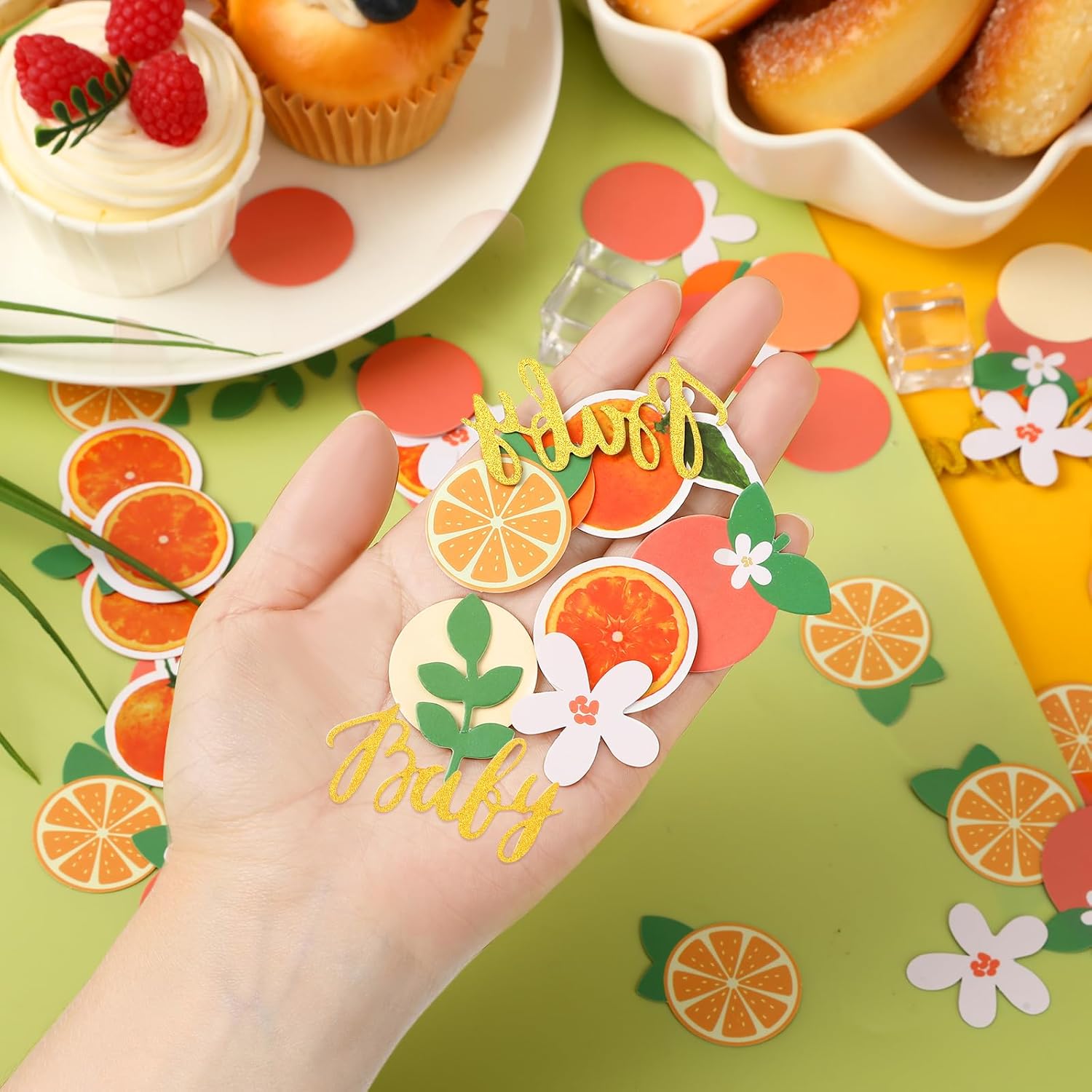 - Package: You will receive 500pcs little cutie baby shower decorations, including different styles such as round confetti, orange baby confetti and green eucalyptus, to meet the decoration needs of your baby shower birthday party, so that every corner of the party will be covered with vivid colors and add infinite joy to the baby's celebration