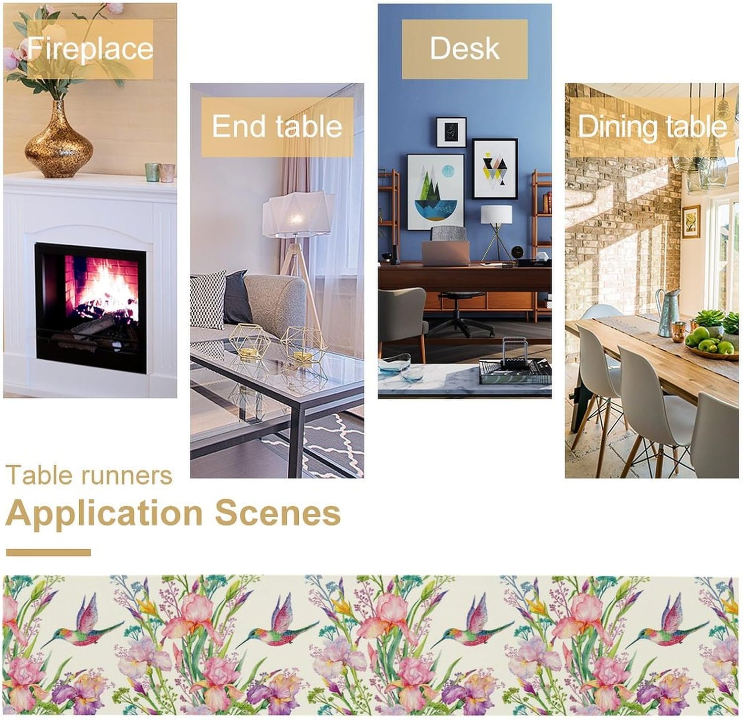 Hummingbird Table Runner,Pink Floral Country Style Table Runner for Kitchen Dining Table Home Party Decoration 13x72 Inch