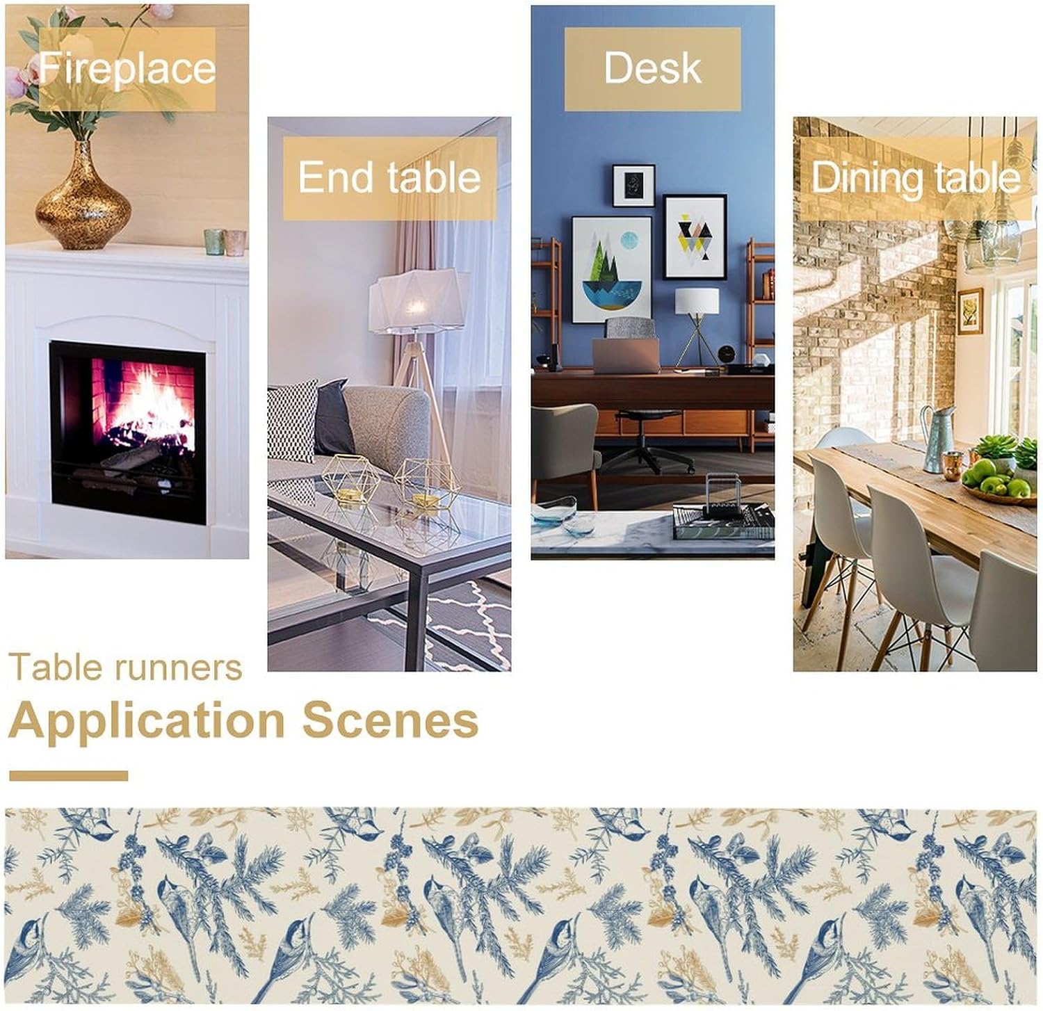 Floral Table Runner,Sketch Birds and Flowers Summer Table Runner Kitchen Dining Table Decoration for Home Party Decor 13x60 Inch