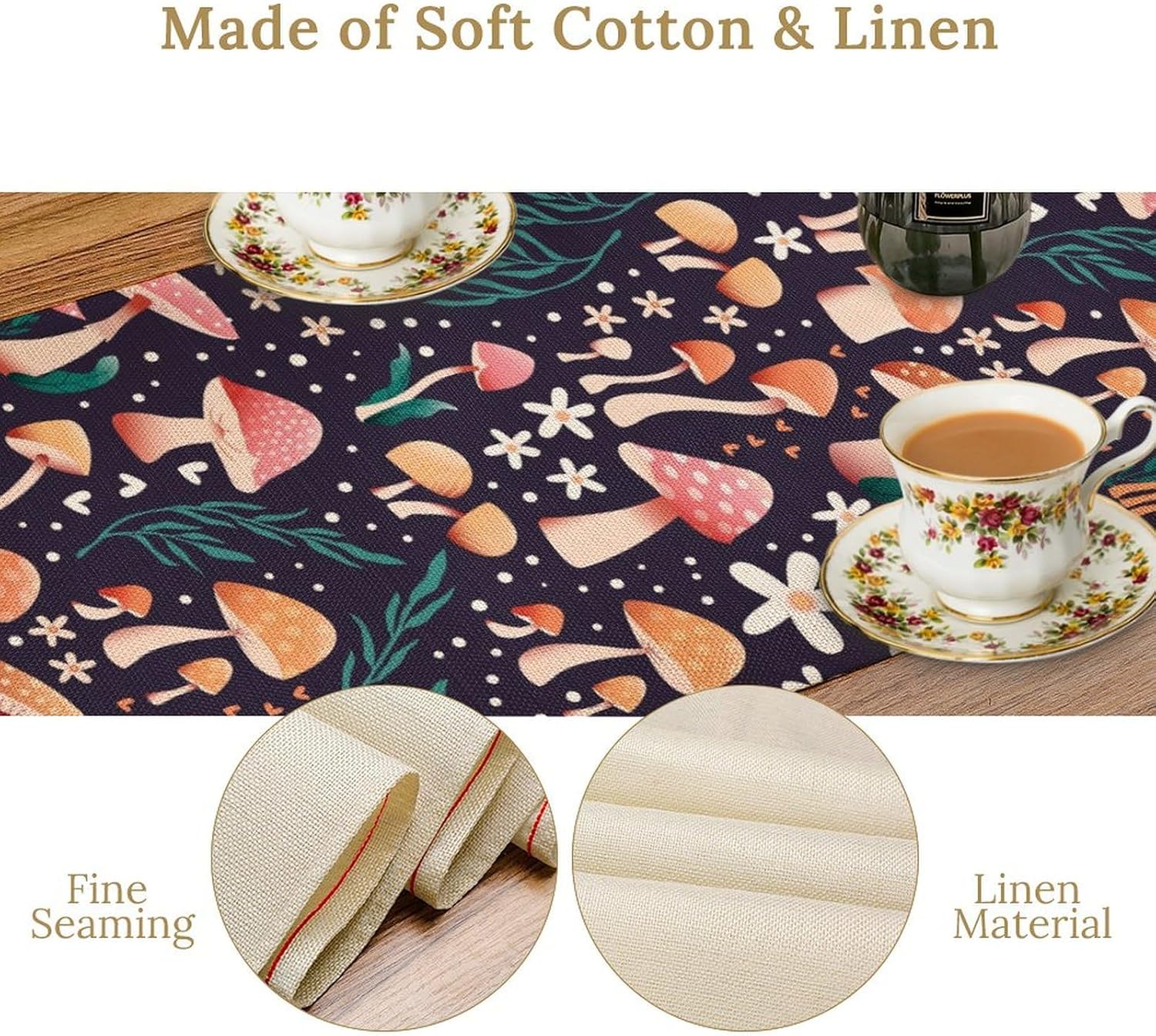 Mushroom Table Runner,Retro Forest Plant Table Cloth Farmhouse Kitchen Dining Table Decoration for Home Party Decor 13x108 Inch