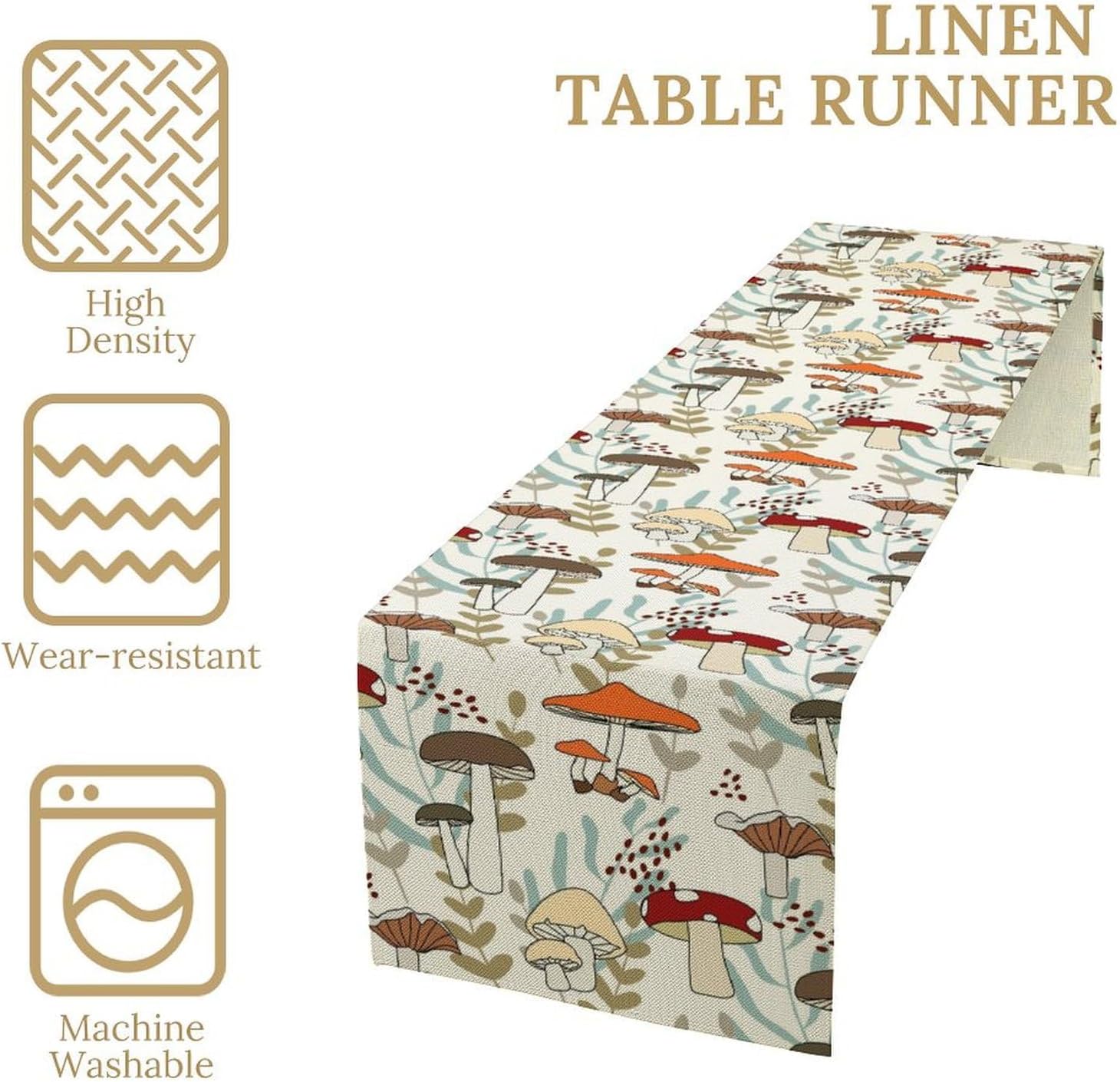Mushroom Table Runner, Vintage Nature Plant Table Runner for Farmhouse Kitchen Dining Table Decoration for Home Party Decor 13x120 Inch