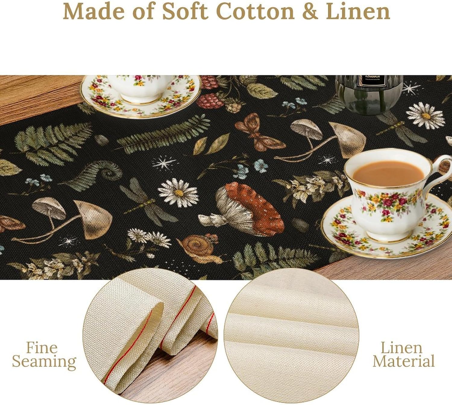 Mushroom Table Runner,Retro Forest Plant Table Runner for Kitchen Dining Table Home Party Decoration 13x60 Inch