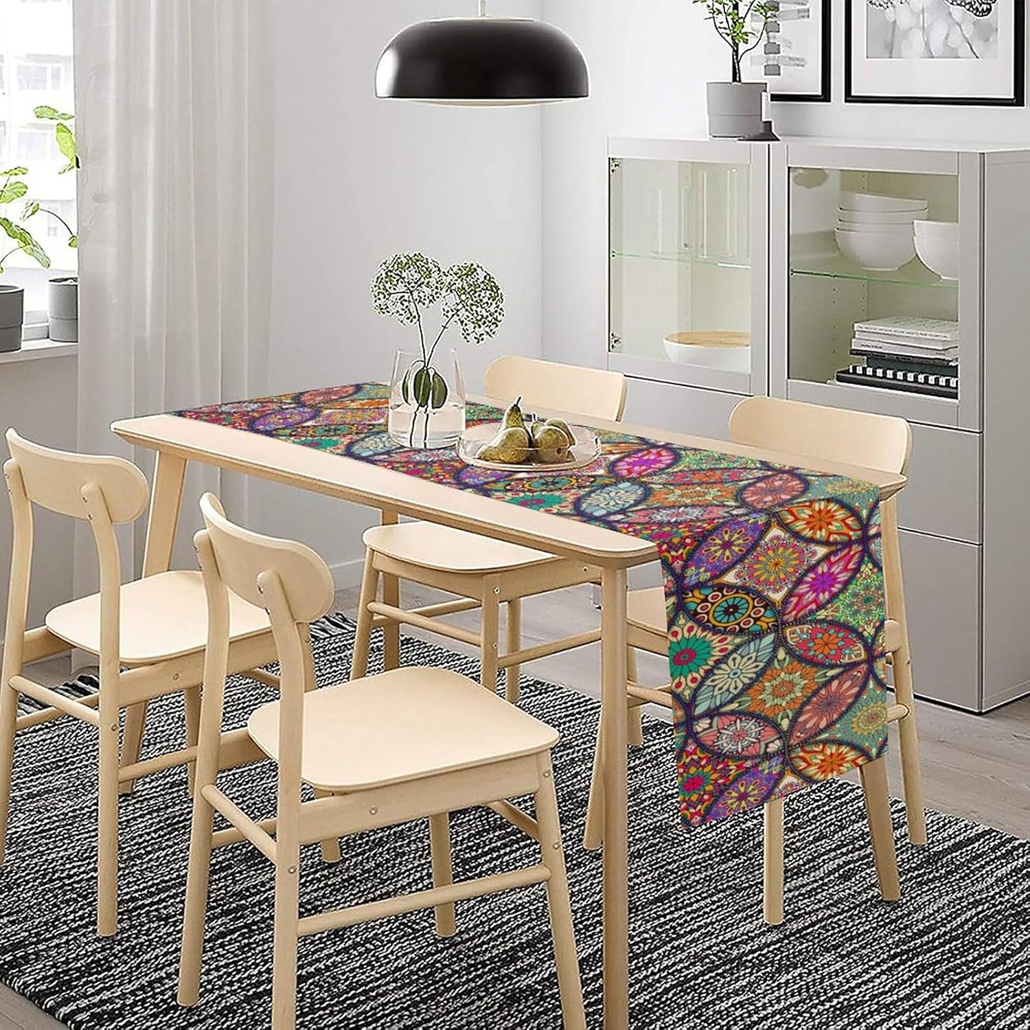 Boho Floral Table Runner,Colorful Flower Retro Bohemian Table Cloth Kitchen Dining Table Home Party Decoration 13x108 Inch