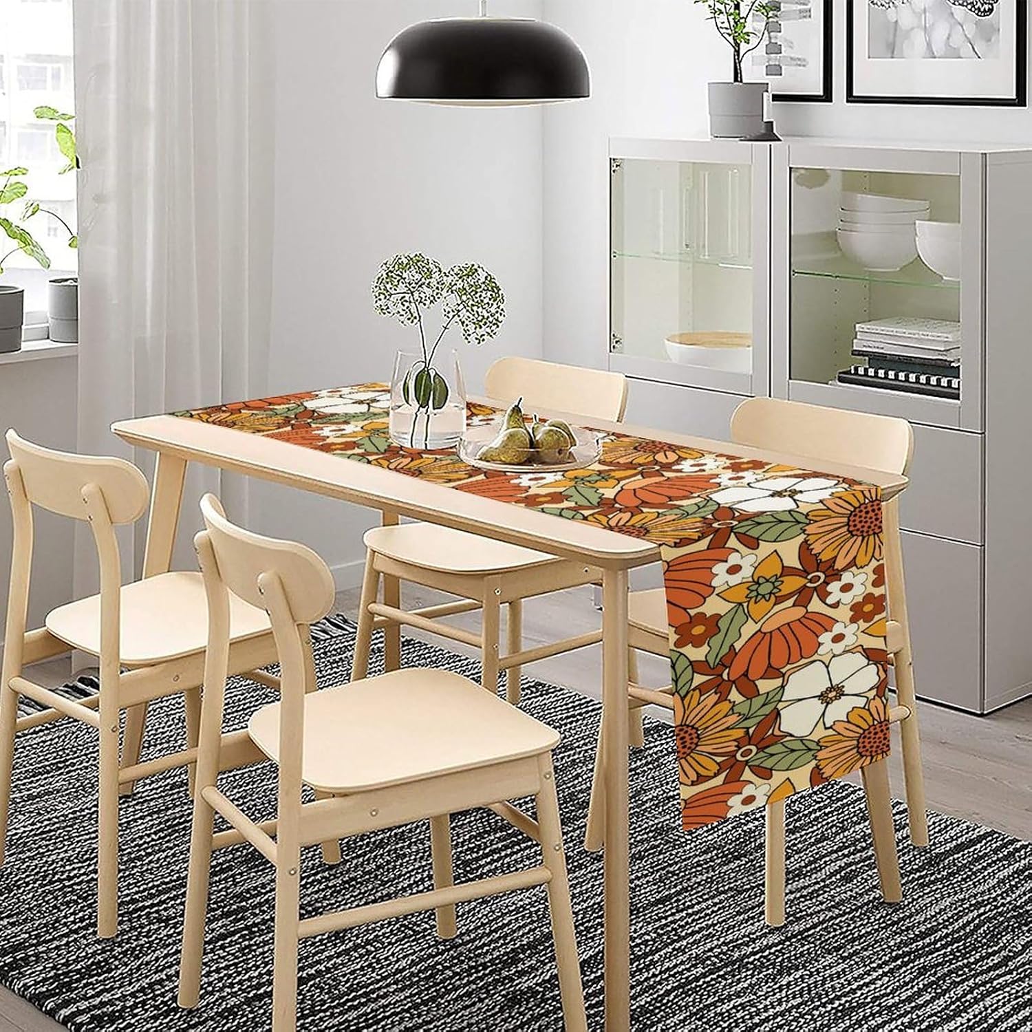 Vintage Floral Table Runner,Boho 70s Style Retro Flower Table Cloth Kitchen Dining Table Home Party Decoration 13x90 Inch