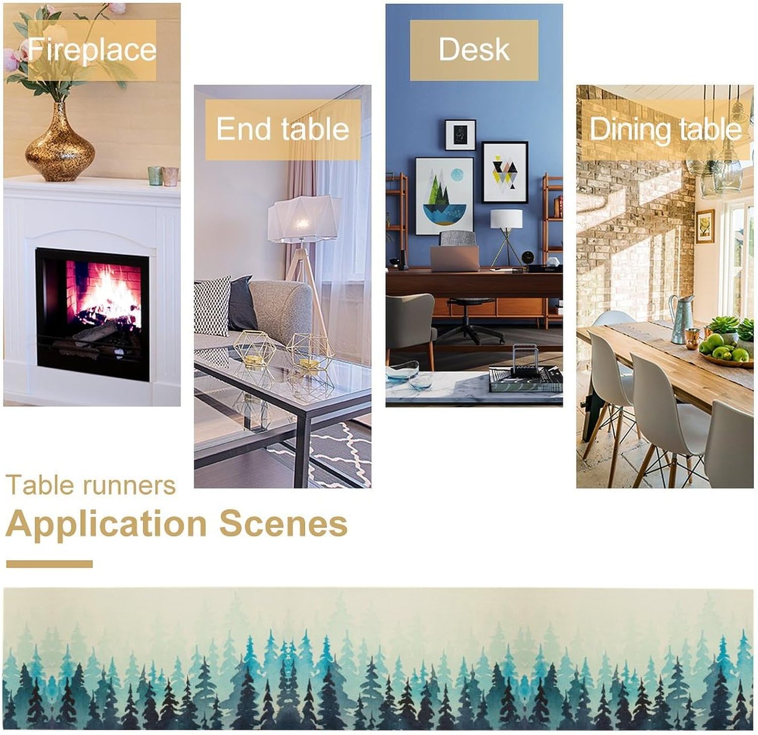 Misty Forest Table Runner,Foggy Blue Forest Landscape Table Runner for Kitchen Dining Table Home Party Decoration 13x90 Inch