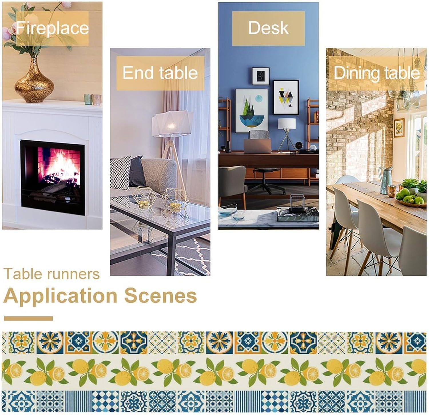 Lemon Table Runner,Watercolor Blue Fruits Green Leaves Print Table Cloth Kitchen Dining Table Home Party Decoration 13x36 Inch