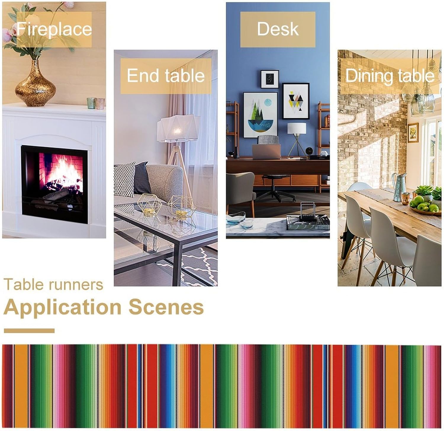 Mexican Table Runner,Colorful Stripe Art Table Runner for Kitchen Dining Table Home Party Decoration 13x60 Inch