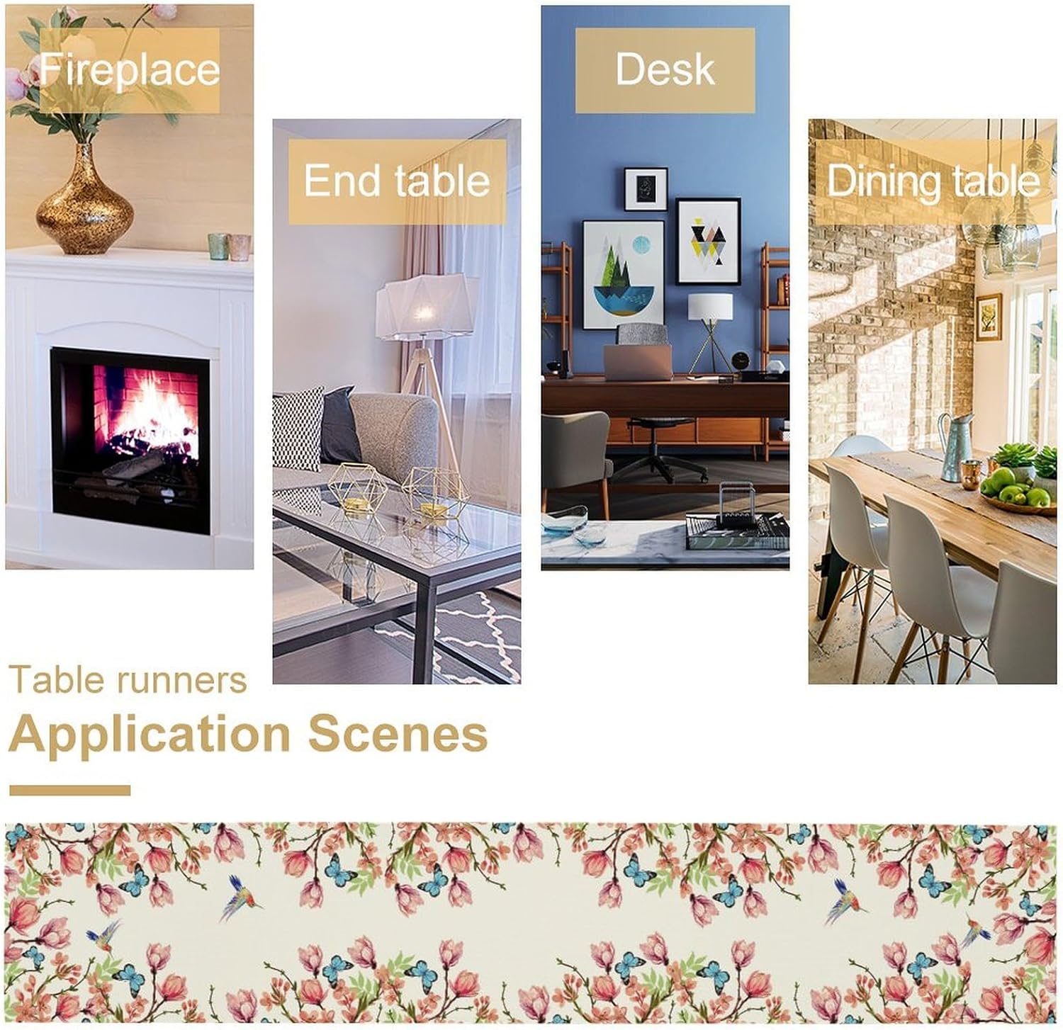 Flowers Table Runner,Floral Bird Butterfly Spring Table Cloth Kitchen Dining Table Home Party Decoration 13x60 Inch