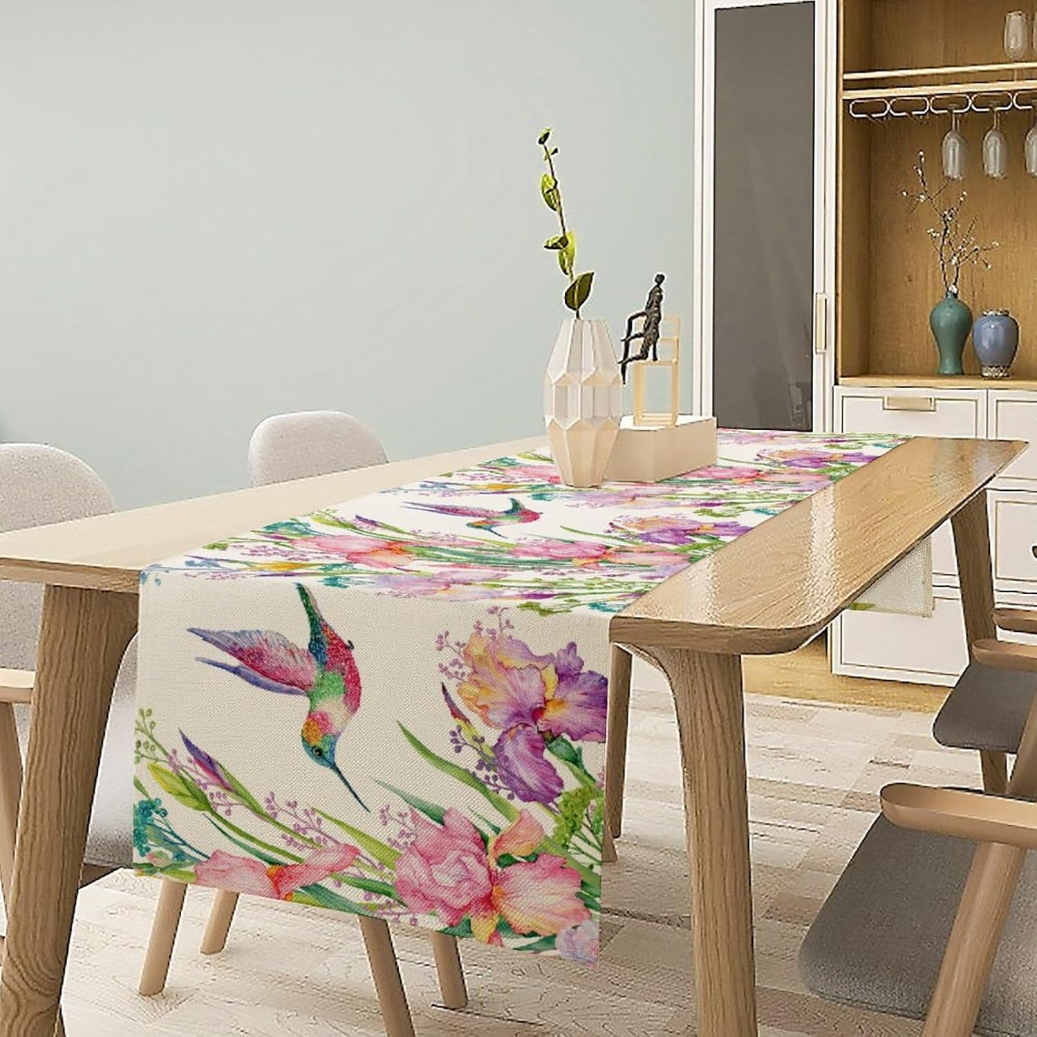 Hummingbird Table Runner,Pink Floral Country Style Table Runner for Kitchen Dining Table Home Party Decoration 13x108 Inch