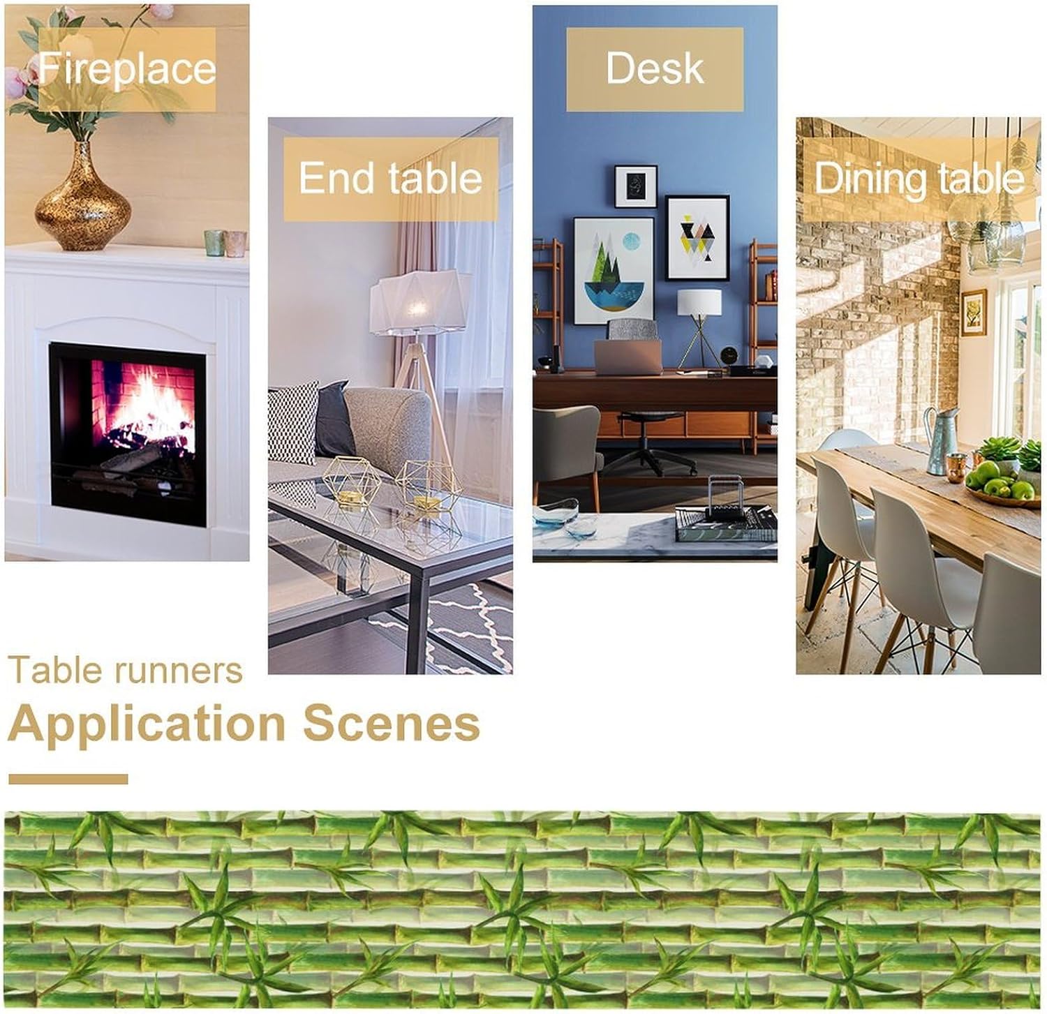Bamboo Table Runner,Green Plant Print Table Runner for Kitchen Dining Table Home Party Decoration 13x60 Inch