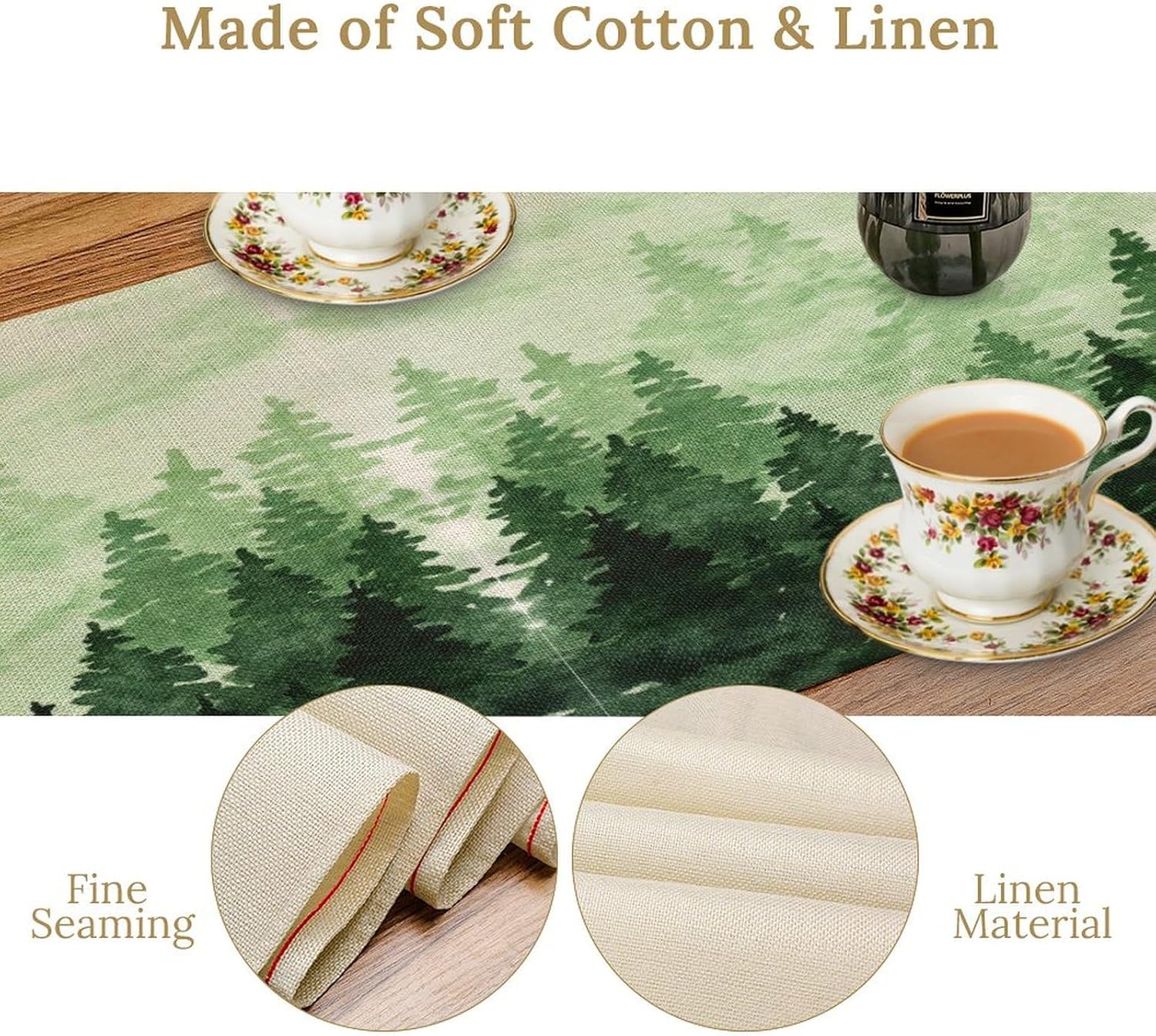 Foggy Forest Table Runner,Watercolor Wreen Misty Forest Landscape Table Runner for Kitchen Dining Table Home Party Decoration 13x60 Inch