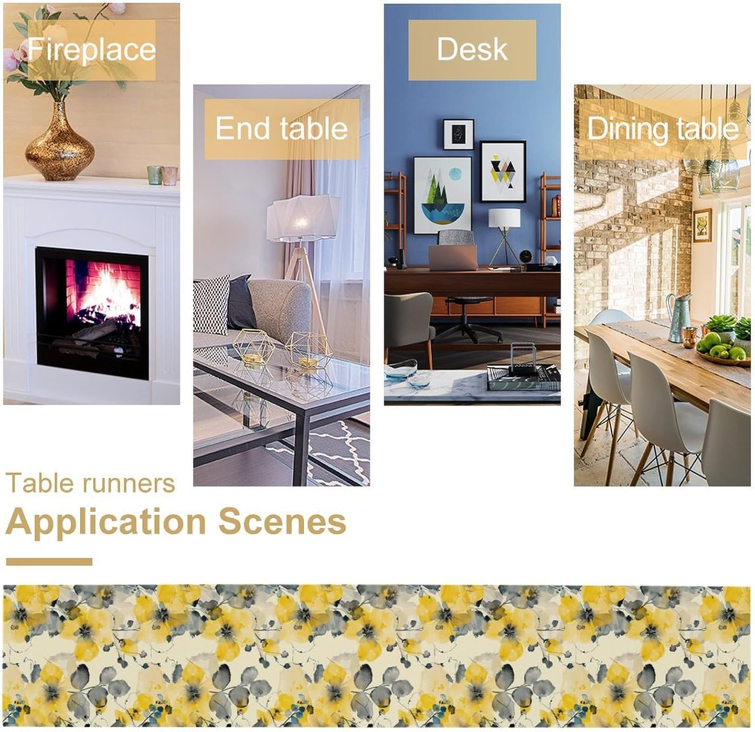 Floral Table Runner,Yellow Flowers Spring Print Table Cloth Kitchen Dining Table Home Party Decoration 13x120 Inch