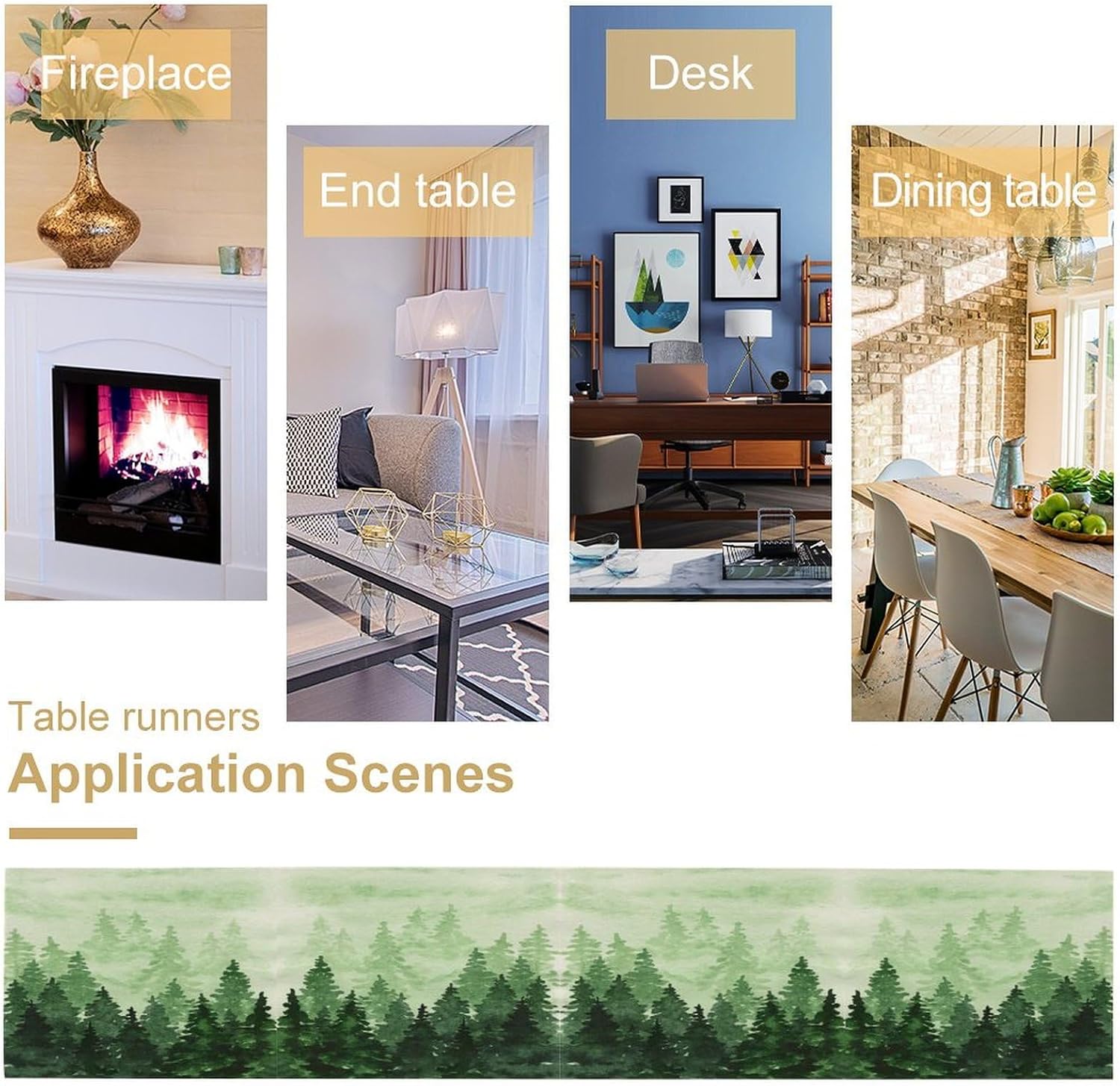 Foggy Forest Table Runner,Watercolor Wreen Misty Forest Landscape Table Runner for Kitchen Dining Table Home Party Decoration 13x36 Inch