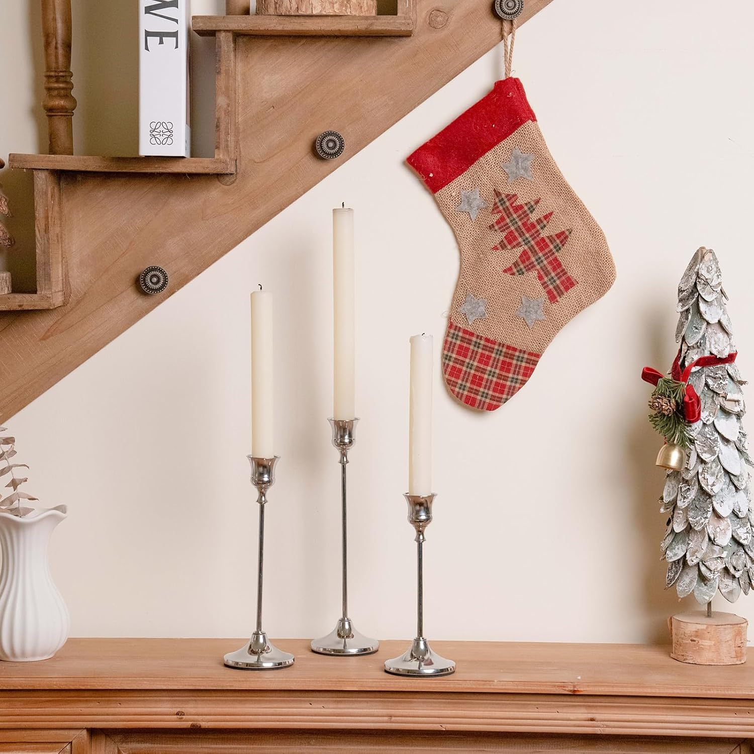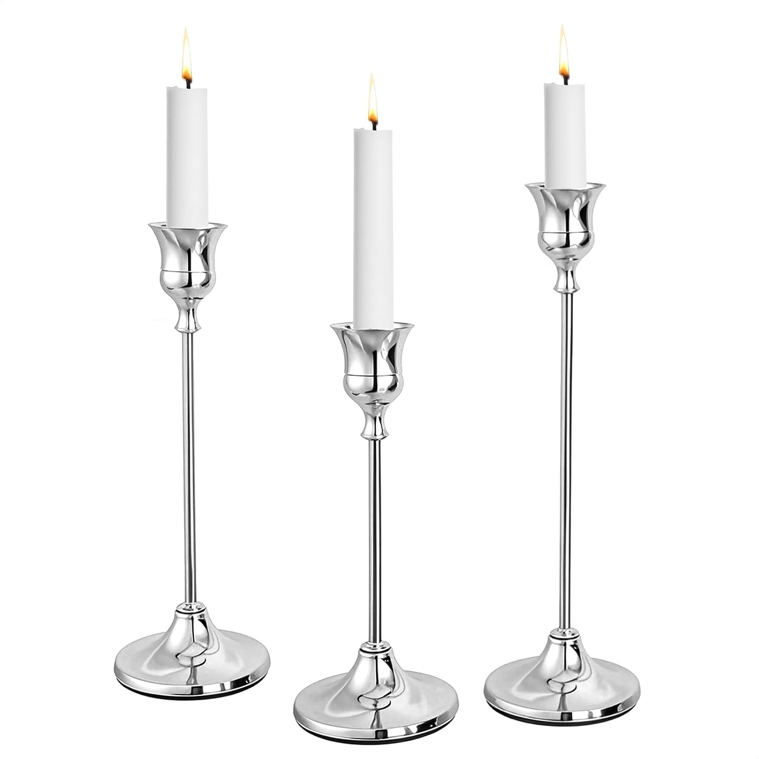CHILL RECIPE Silver Taper Candle Stick Holders Tall Candle Holder, Vintage Candlesticks Holder Bulk for Home Decor Table Centerpiece Dining Party Festival Decorations(1 Set 3Pcs)