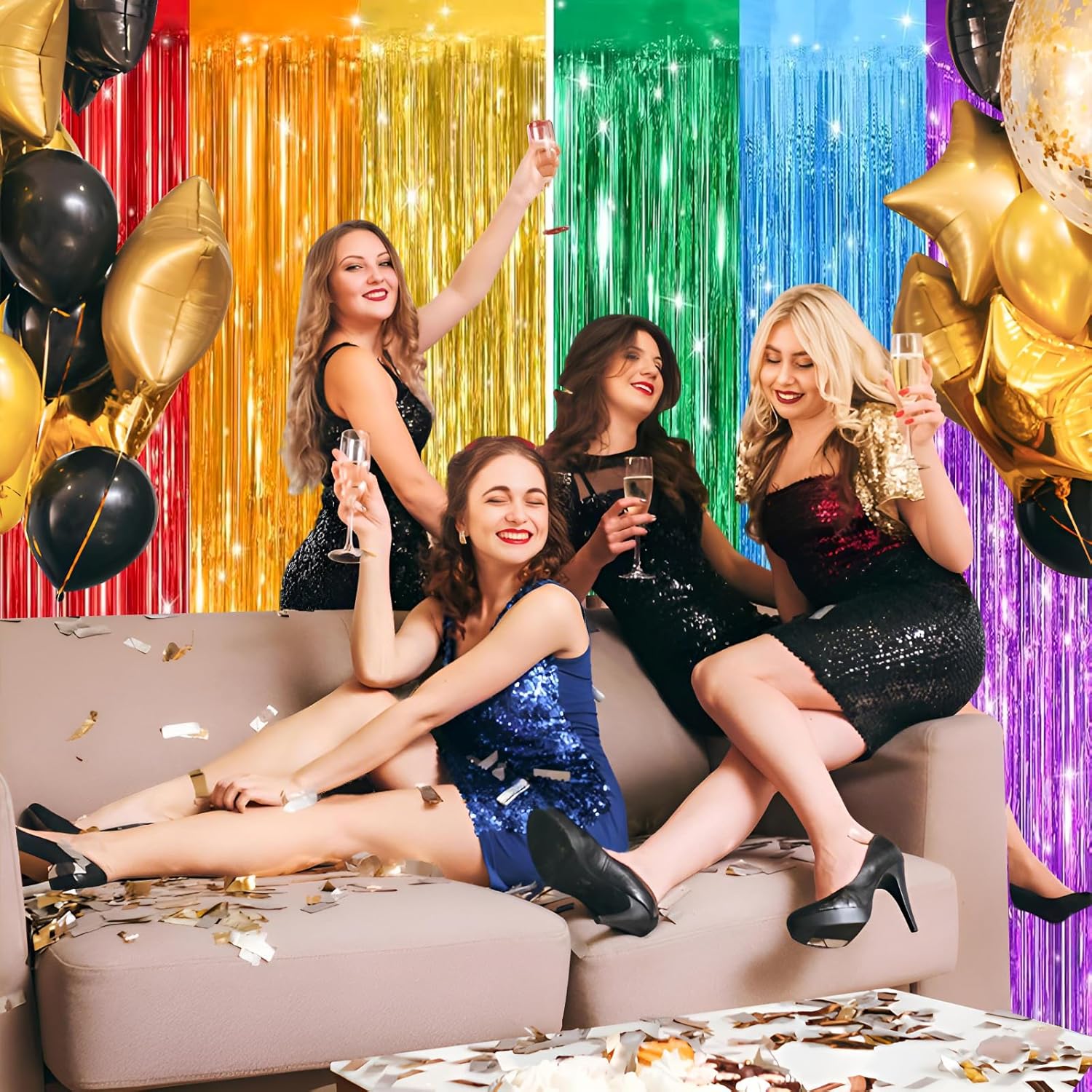 - 2 Pack foil fringe tinsel backdrops: each measuring a whopping 3.3 ft x 8.3 ft.Long enough for indoor or outdoor parties. Also can be cut in suitable length for your birthdays Party decorations These backdrops are perfect for creating stunning party decorations, event backdrops, and photo booths that will leave your guests in awe.